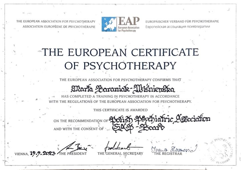 Do Pani Marty skierował mnie lekarz psychiatra. Pomimo moich obaw okazało się, że rozpoczęcie terapii było bardzo dobrą decyzją. Dzięki terapii zacząłem lepiej radzić sobie z emocjami, dużo udało mi się zrozumieć i zmienić w moim życiu. Polecam terapię u Pani Marty, jest życzliwa, empatyczna i profesjonalna.