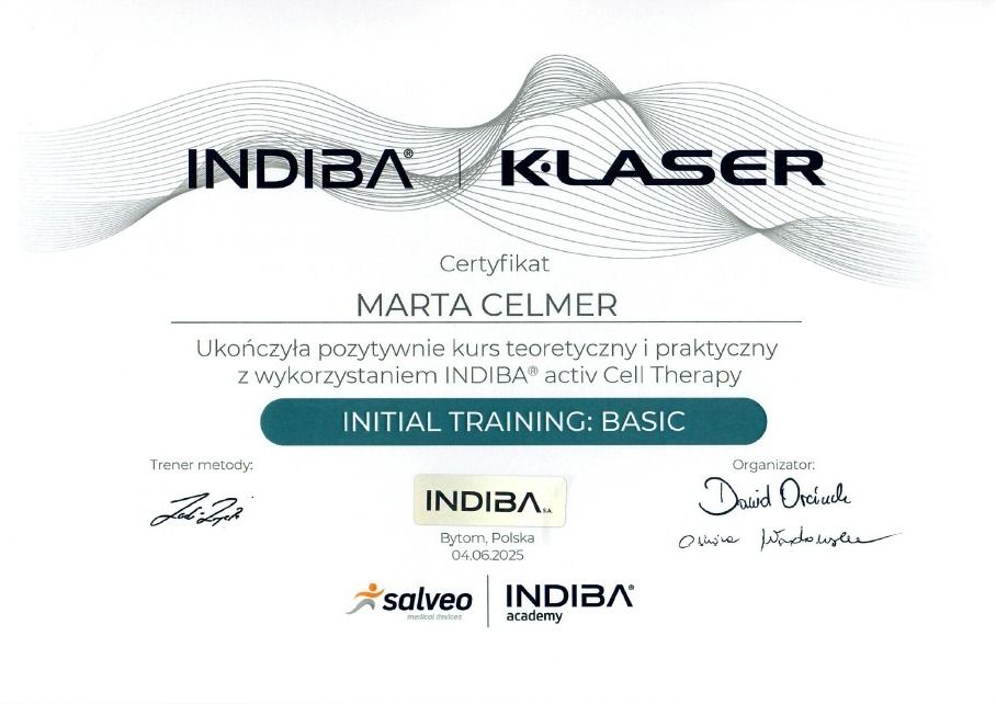 Jaki jest zakres porad oferowanych przez Marta Celmer?Marta Celmer to fizjoterapeuta. Na podstawie swojego doświadczenia i wykształcenia Marta Celmer oferuje usługi takie jak: rehabilitacja neurologiczna, kinezyterapia, Fizjoterapia po udarach w chorobach OUN, Rehabilitacja z egzoszkieletem, konsultacja fizjoterapeutyczna (pierwsza wizyta), terapia stawów skroniowo-żuchwowych, rehabilitacja ortopedyczna, konsultacja fizjoterapeutyczna, Masaż leczniczy, INDIBA oraz INDIBA + terapia manualna.