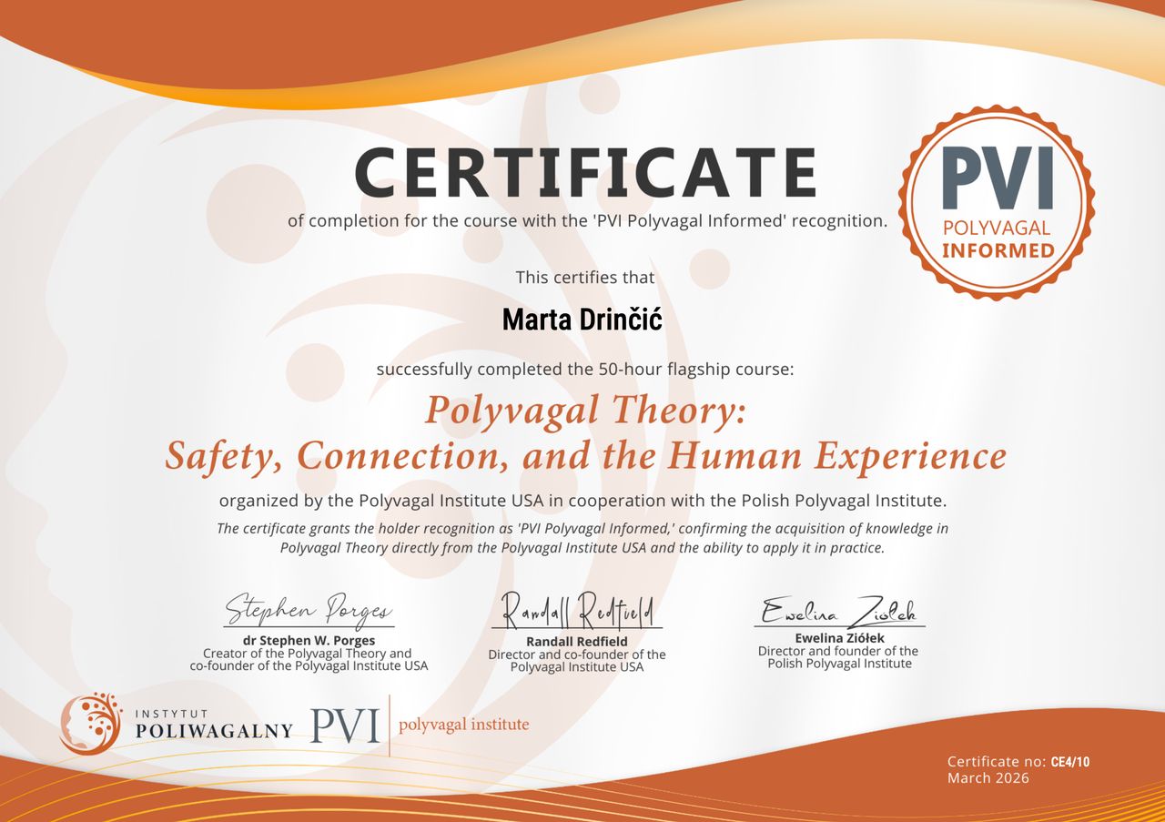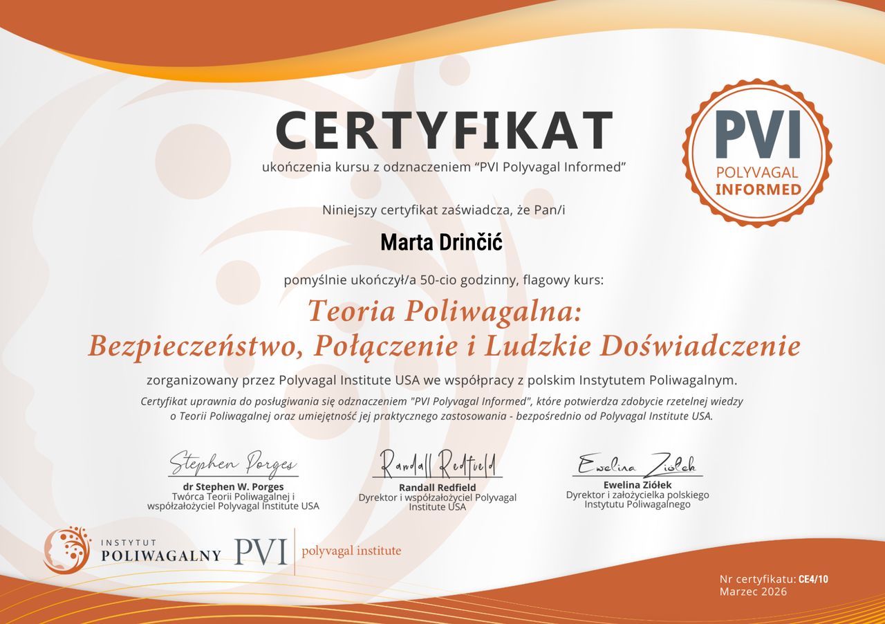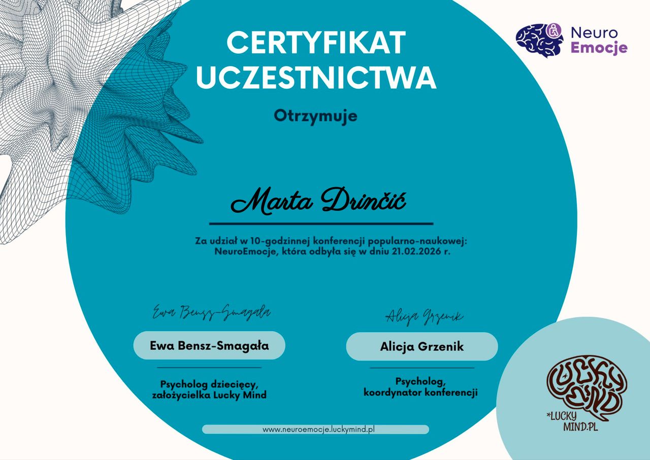 Jaki jest zakres porad oferowanych przez Marta Drinčić?Marta Drinčić to psycholog, psychoterapeuta. Na podstawie swojego doświadczenia i wykształcenia Marta Drinčić oferuje usługi takie jak: interwencja kryzysowa, Konsultacja psychologiczna, konsultacja psychoterapeutyczna, konsultacja psychologiczna pary/małżeńska, Warsztaty dla rodziców, diagnoza ADHD dla dorosłych, badanie kwestionariuszem DIVA-5, konsultacja online.