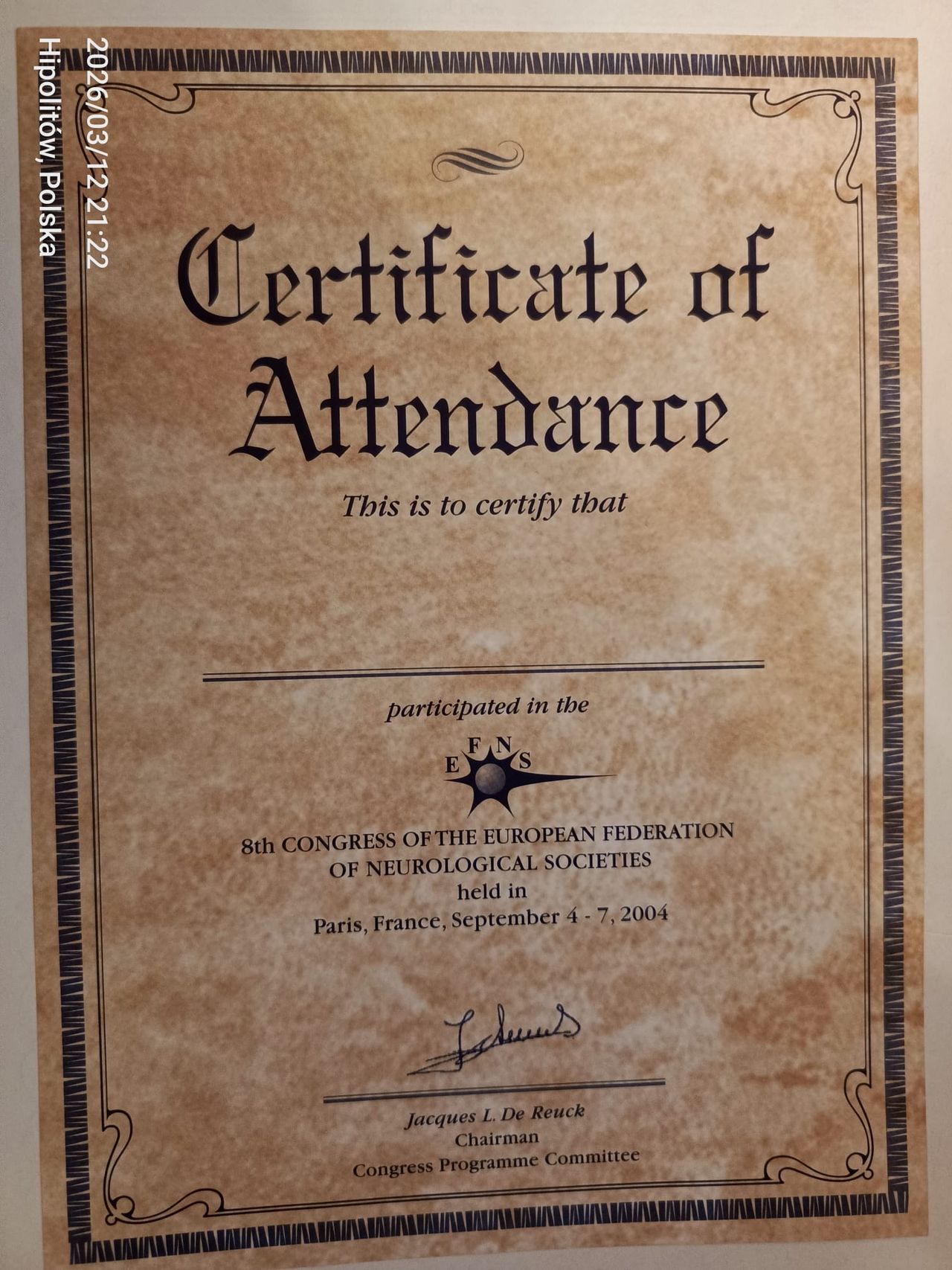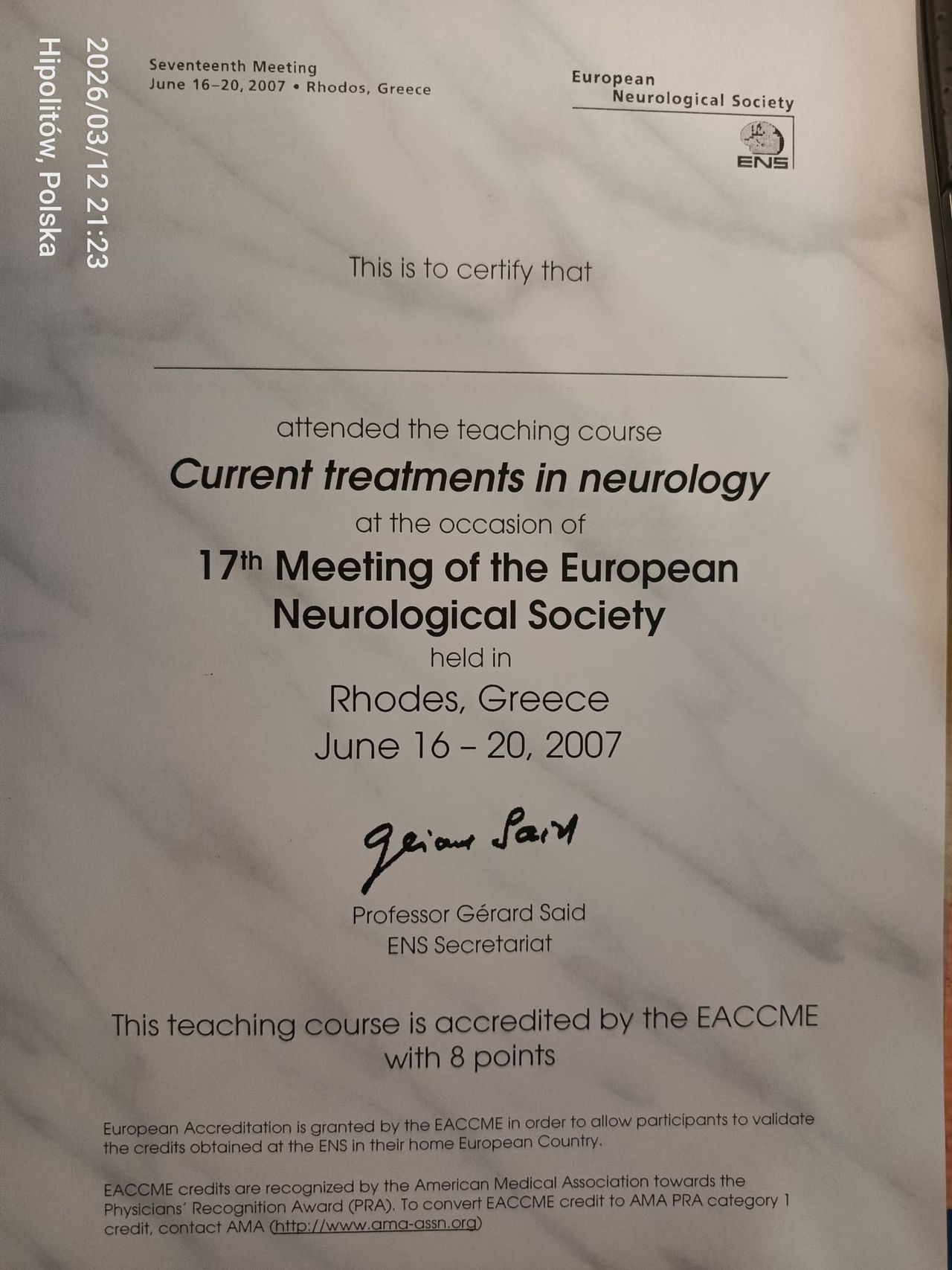 * Neurofizjologii klinicznej w zakresie elektromiografii (EMG) i somatosensorycznych potencjałów wywołanych