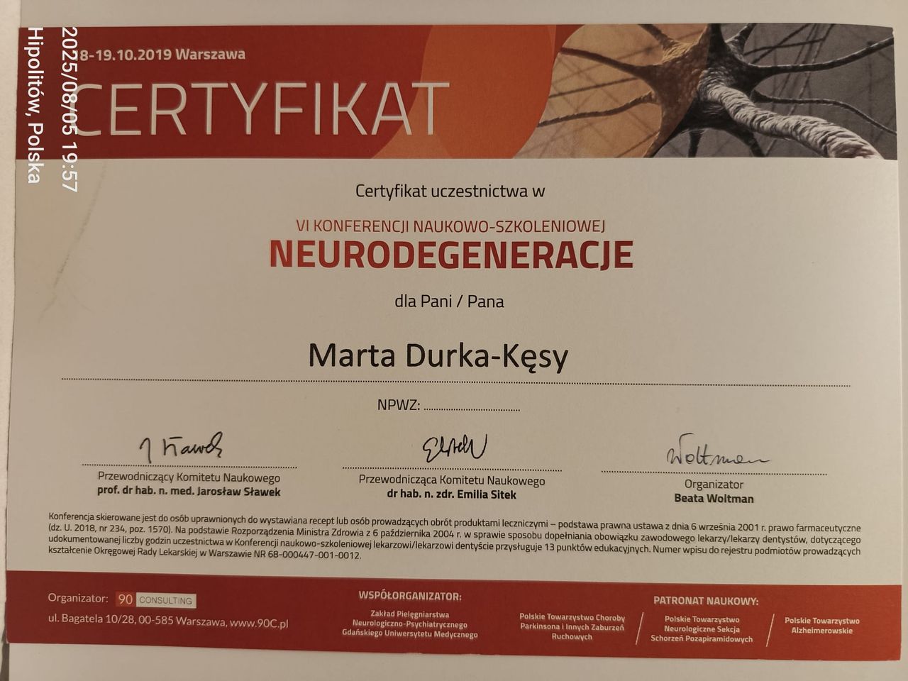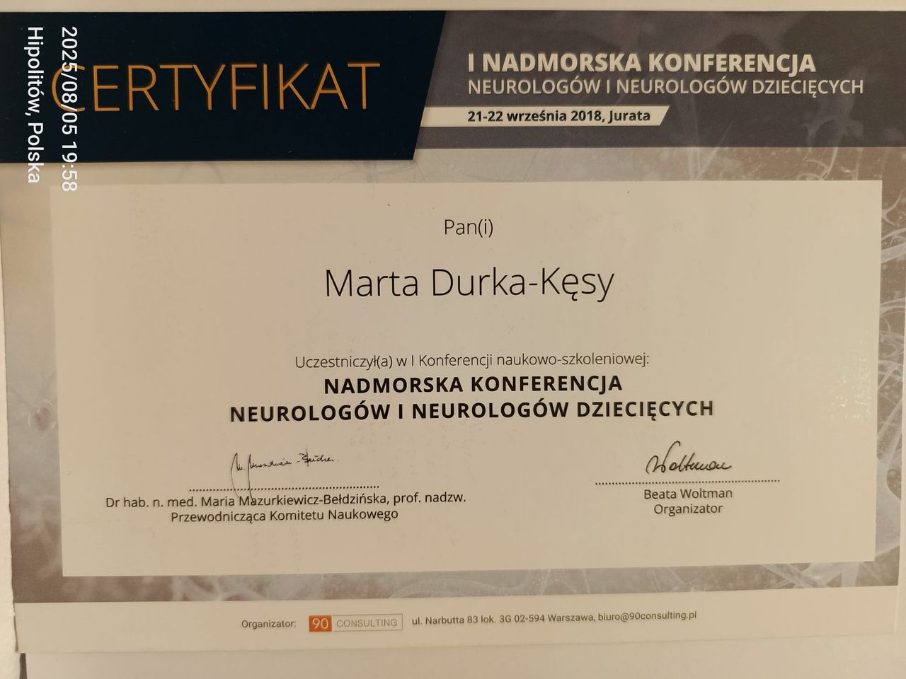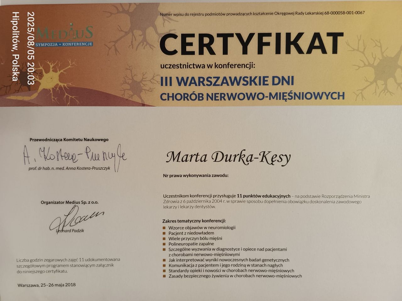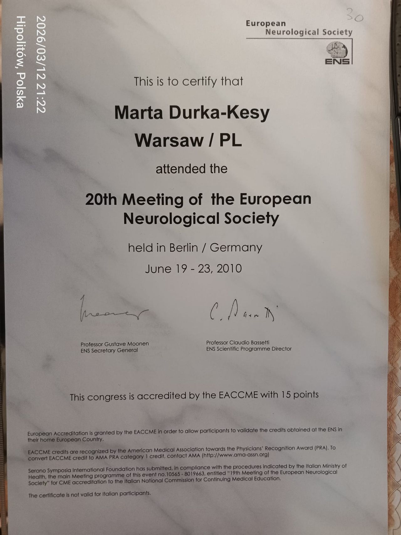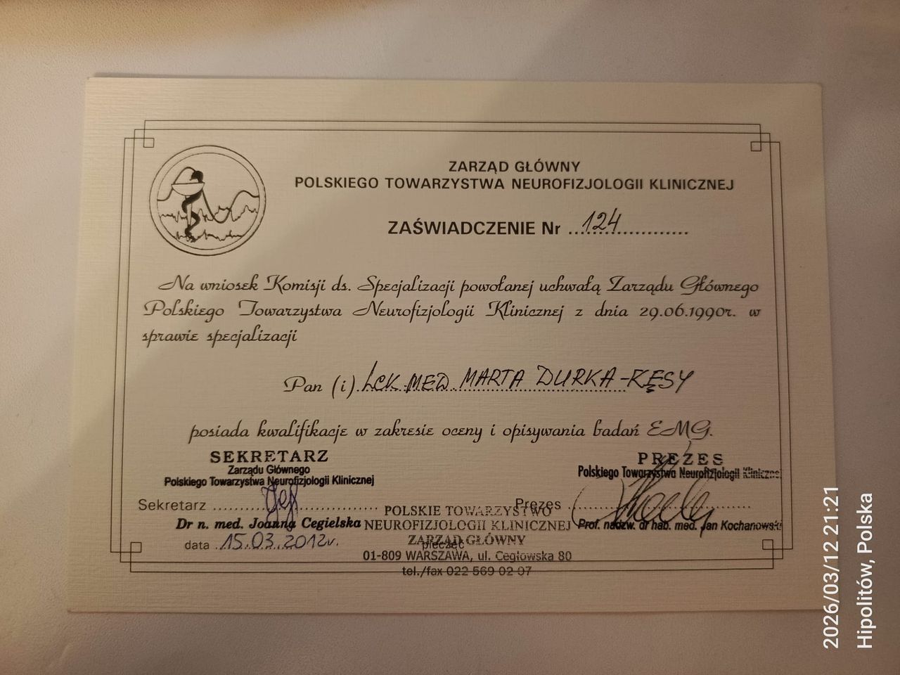 dr n. med. M. Durka - Kęsy, specjalista neurolog