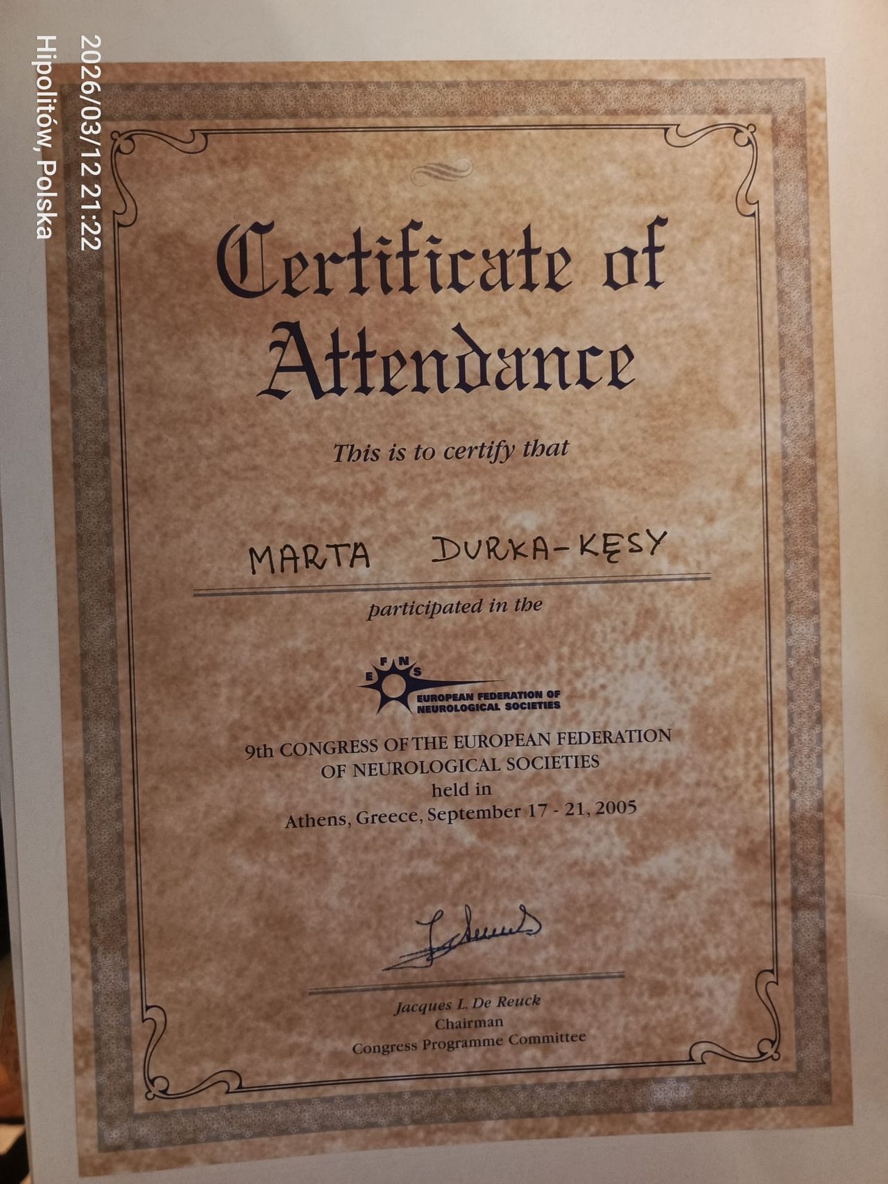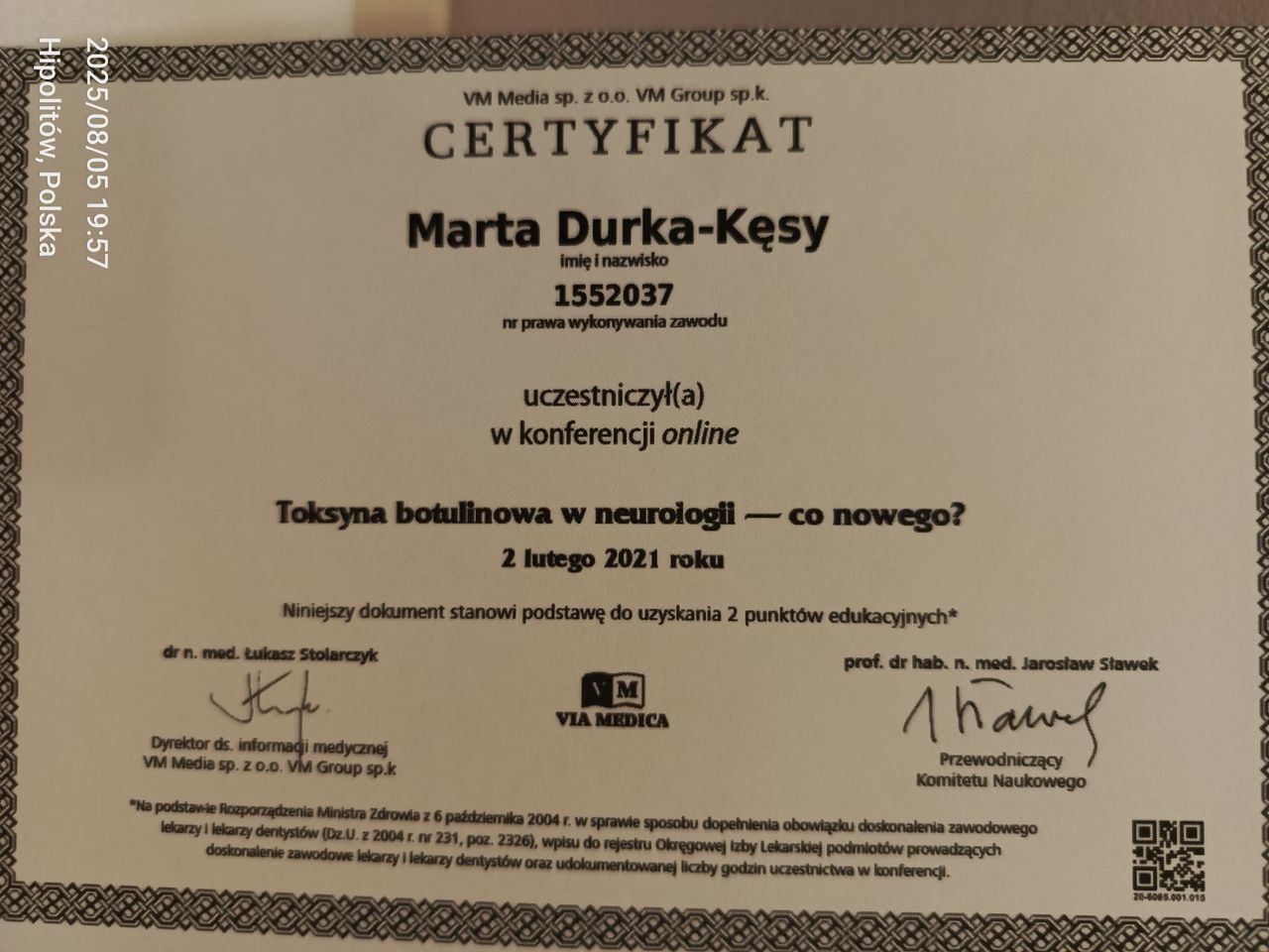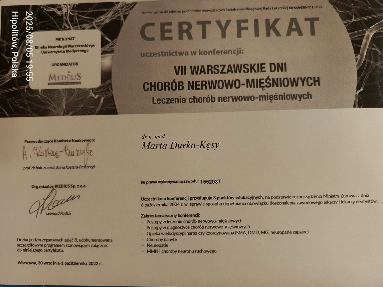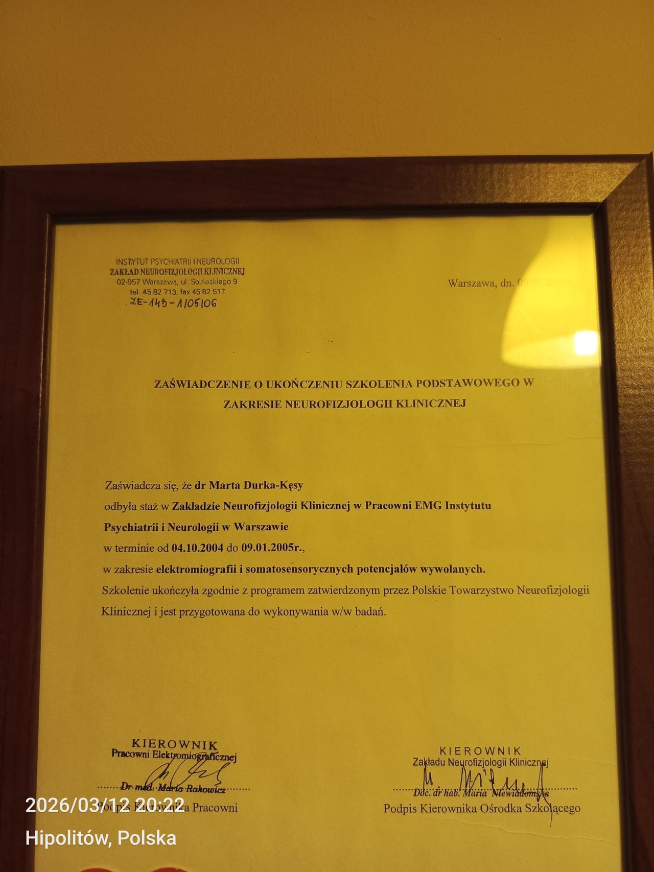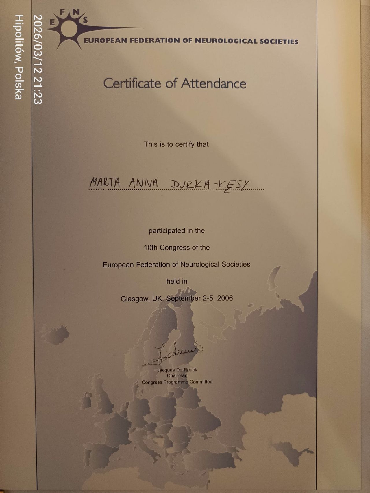 dr n. med. M. Durka - Kęsy, specjalista neurolog
