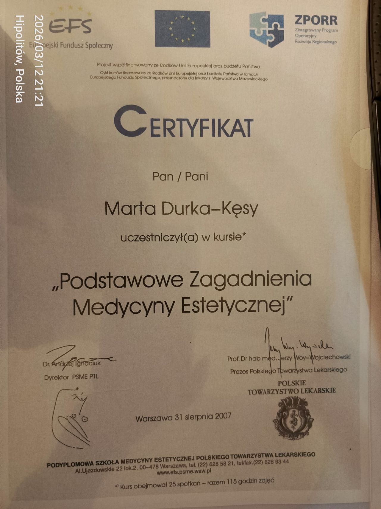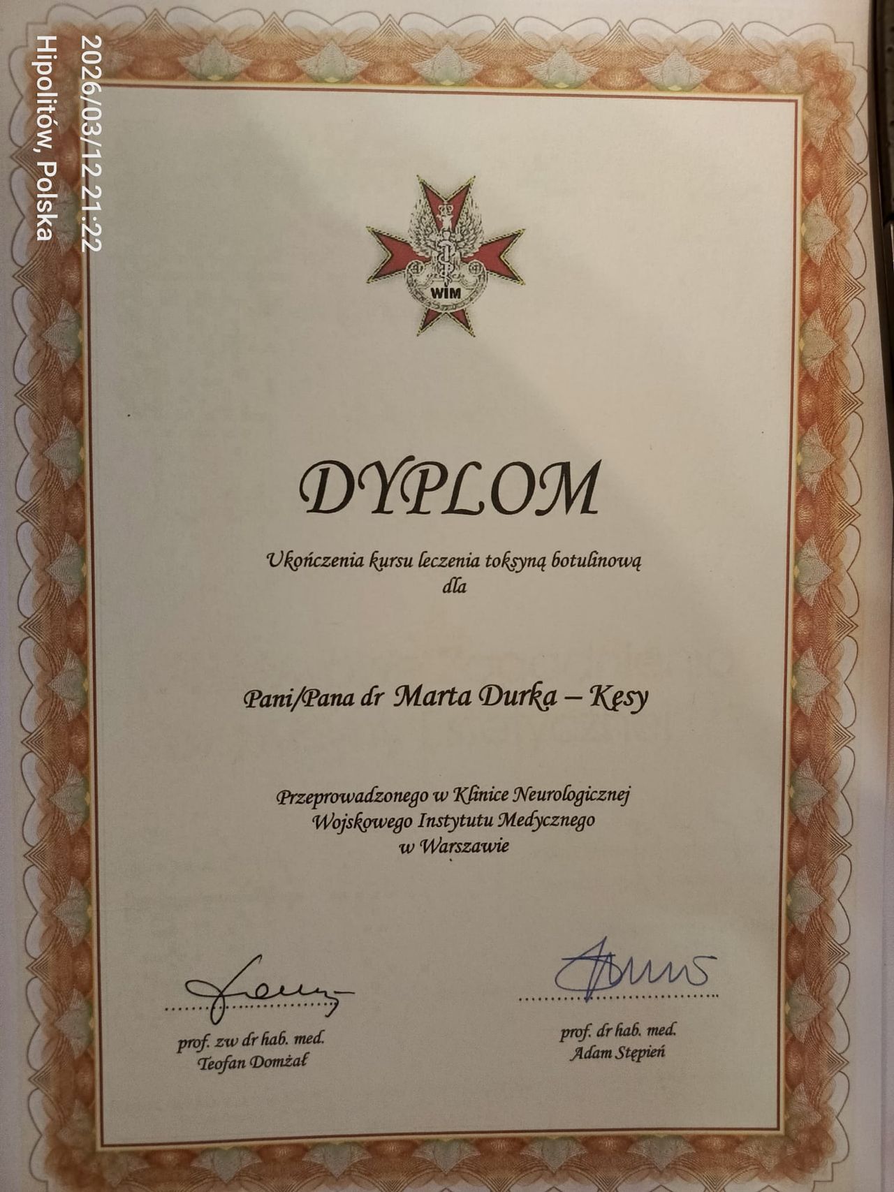 Jaki jest zakres porad oferowanych przez Marta Durka - Kęsy?Marta Durka - Kęsy to neurolog, lekarz wykonujący zabiegi medycyny estetycznej. Na podstawie swojego doświadczenia i wykształcenia Marta Durka - Kęsy oferuje usługi takie jak: ENG - elektroneurografia, konsultacja neurologiczna (pierwsza wizyta), Botoks, Badanie EMG - elektromiografia - nerw twarzowy, Badanie EMG - elektromiografia - uszkodzenie splotu, Badanie EMG - elektromiografia - obustronny zespół cieśni nadgarstka, Badanie EMG - elektromiografia - Próba miasteniczna, Leczenie bruksizmu toksyną botulinową, Blokada przykręgosłupowa, Badanie EMG - elektromiografia - zespół korzeniowy 1 kończyna.