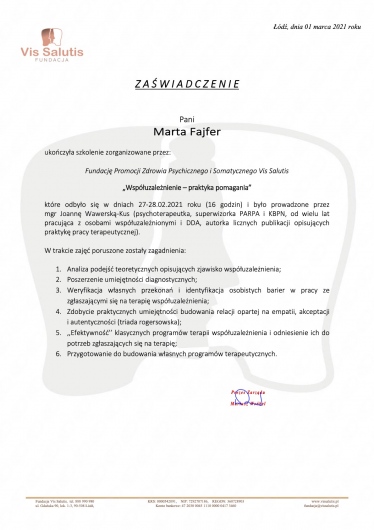 Dziękuję serdecznie. Marta Fajfer