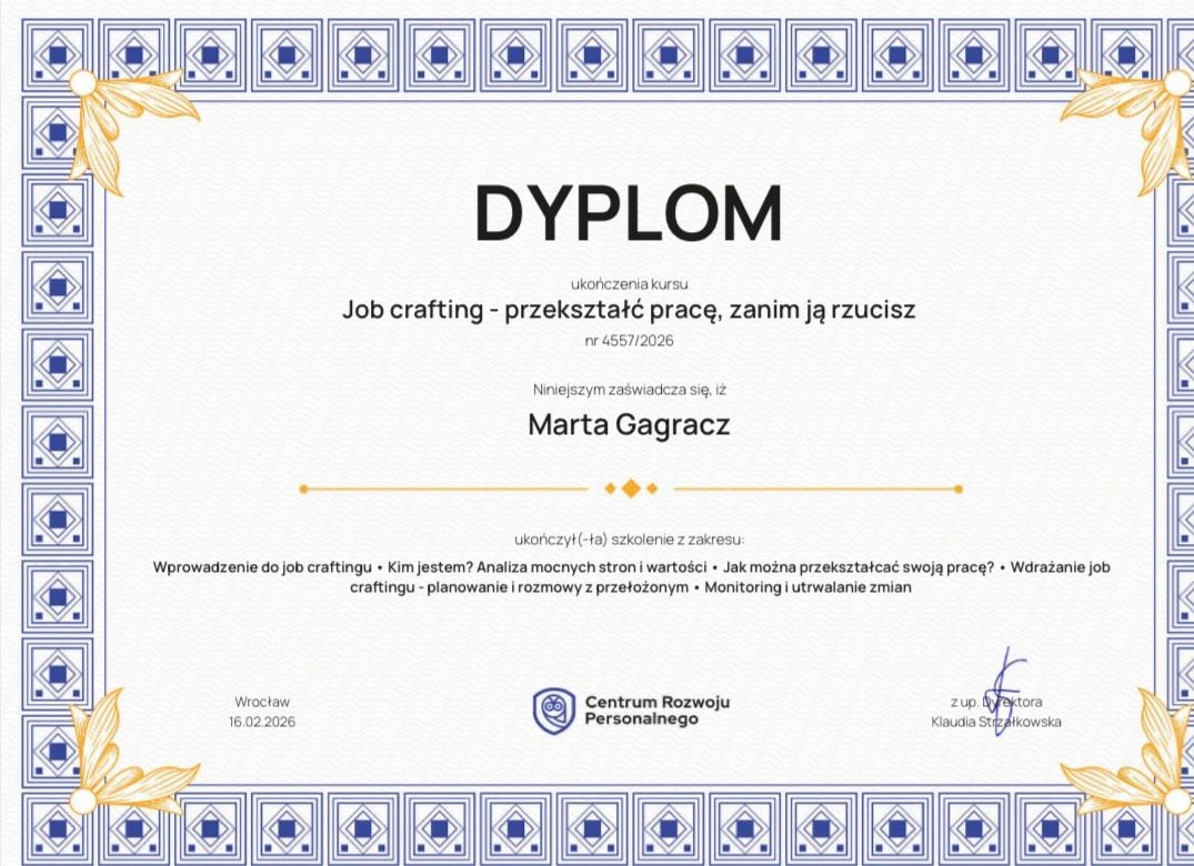 Nadal jestem w trakcie terapii i każda sesja utwierdza mnie, że to była dobra decyzja. Czuję się wysłuchana, traktowana po partnersku i bez oceniania. Pani Marta z dużą empatią pomaga mi dochodzić do odpowiedzi, które wcześniej były dla mnie nieosiągalne. Mam za sobą inne terapie, ale dopiero tu czuję, że naprawdę nadajemy na tych samych falach. To ogromna różnica, gdy terapeuta nie narzuca gotowych schematów, tylko prowadzi w sposób, który realnie daje zrozumienie i zmianę. Z pełnym przekonaniem polecam.
