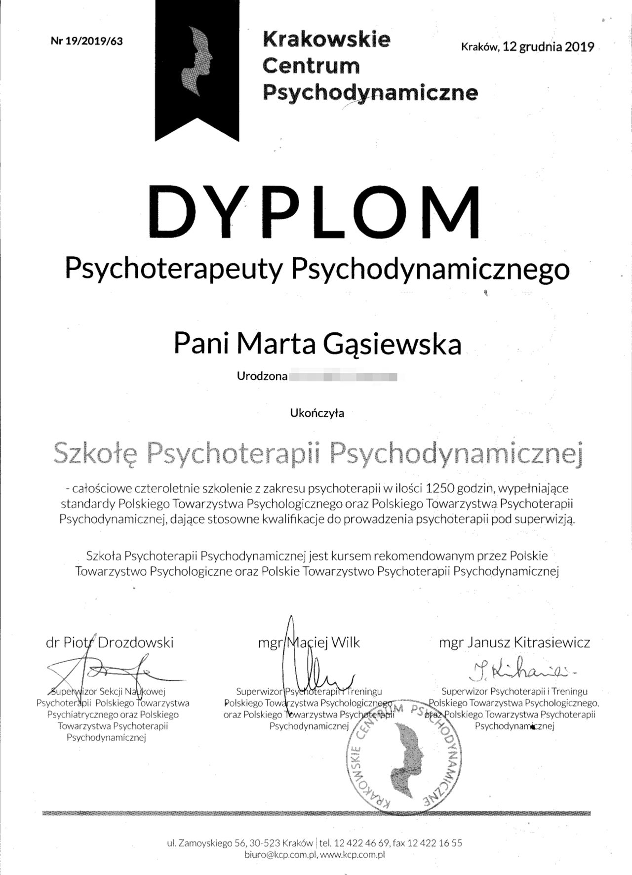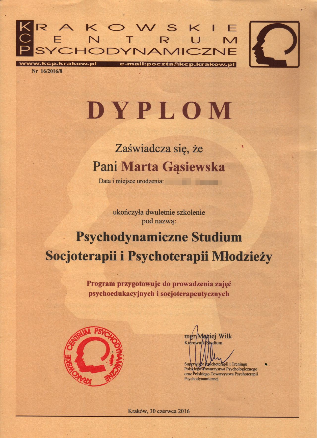 Jestem psychologiem, socjoterapeutą i dyplomowanym psychoterapeutą psychodynamicznym.