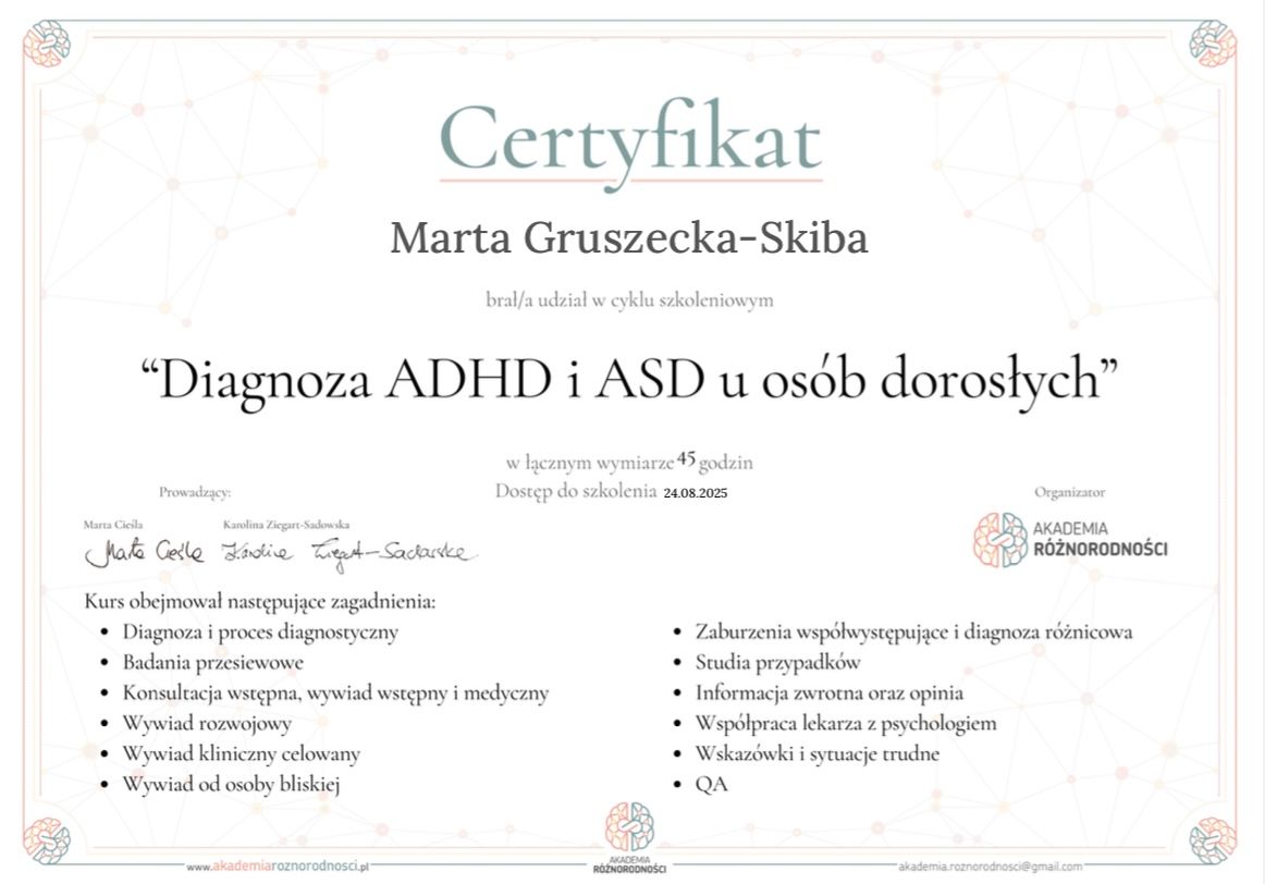 • Miejsce dla siebie • diagnoza ADHD dla dorosłych •