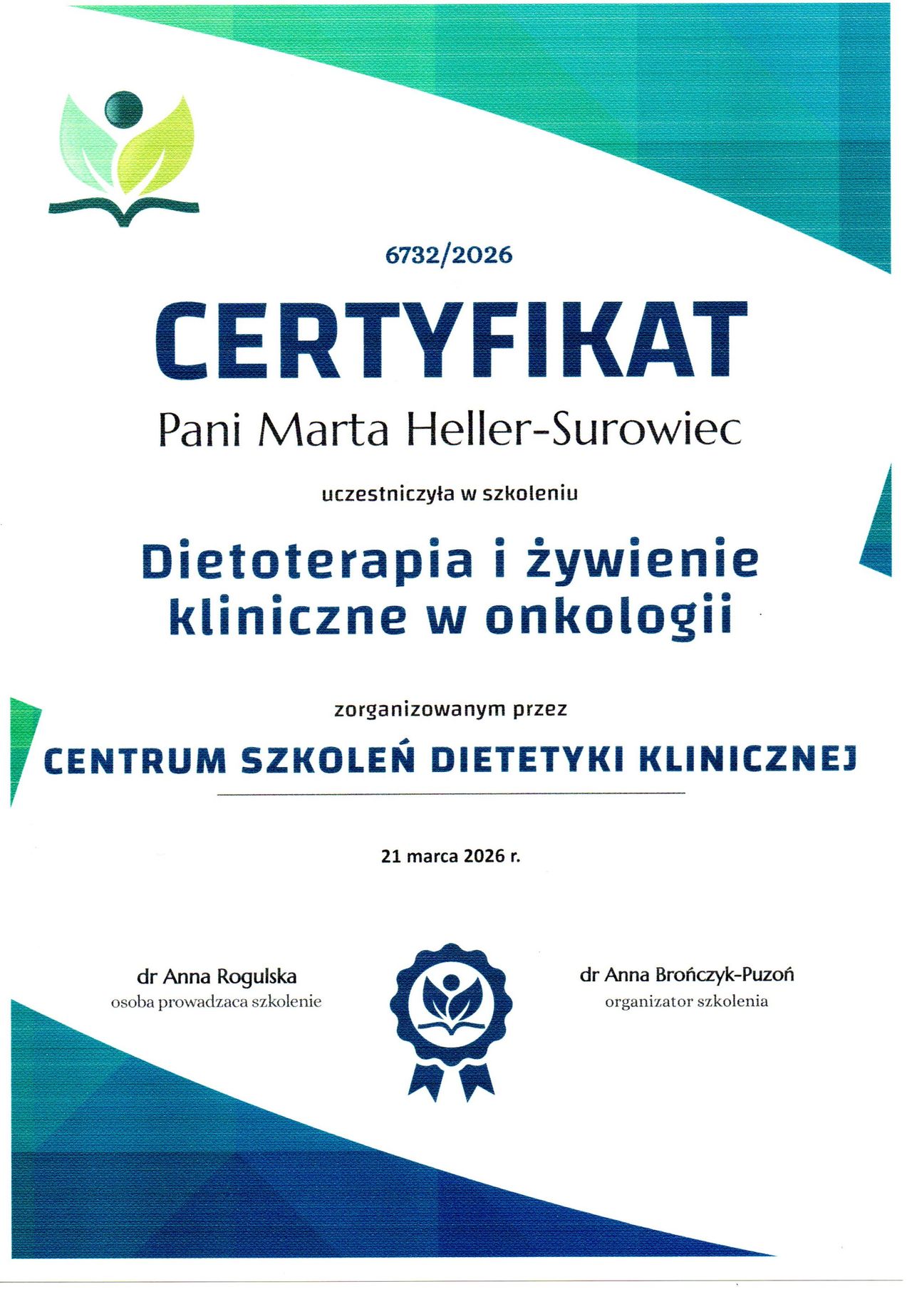 W pracy łączę wiedzę medyczną z empatycznym podejściem psychodietetycznym. Uważam, że skuteczna dieta to taka, która dopasowuje się do życia pacjenta – nie odwrotnie.