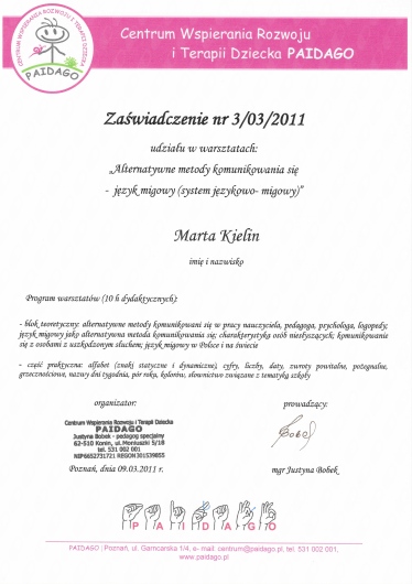 Pani Marta ma bardzo dobry kontakt z dzieckiem, a wprowadzane ćwiczenia rozwiązują Jego problemy. Polecam :)