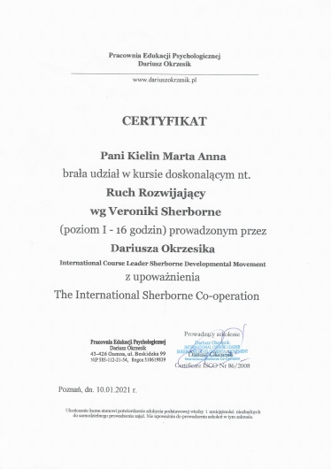 • Metoda Ruchu Rozwijającego Weroniki Sherborne- I stopień