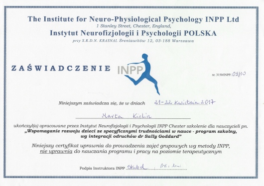 • Wspomaganie rozwoju dzieci ze specyficznymi trudnościami w nauce- program szkolny wg integracji odruchów Sally Goddard”