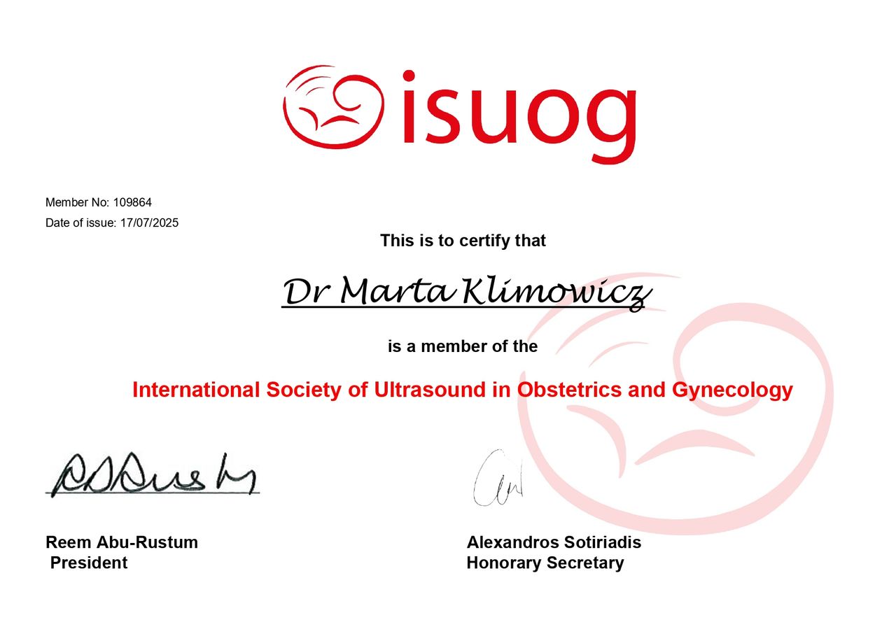 Jestem aktywnym członkiem Polskiego Towarzystwa Ginekologów i Położników. Uczestniczę w licznych konferencjach oraz kursach, stale podnosząc swoje kompetencje. Szczególnym obszarem moich zainteresowań zawodowych jest diagnostyka prenatalna oraz ultrasonografia w położnictwie. Uwagę poświęcam również schorzeniom ginekologicznym takim jak zespół policystycznych jajników, endometrioza, czy dobór odpowiedniej antykoncepcji.