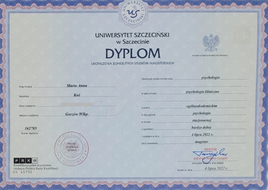 Psycholog naprawdę wart polecenia. Byłam u 4 różnych terapeutów zanim trafiłam do tego gabinetu, nigdzie nie poczułam się tak dobrze, nigdzie nie poczułam takiego profesjonalizmu, takiego komfortu. Pani Marta okazuje zrozumienie, empatię. Na wstępie przeprowadza szczegółowy wywiad, żeby móc opracować plan działania terapeutycznego. Pani Marta jest osobą delikatna która otula swoim ciepłym tonem głosu. Psycholog na wagę złota.