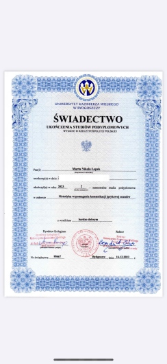 7.1. Istnieje możliwość wystawienia zaświadczenia po wcześniejszym omówieniu z psychologiem – koszt 30 zł.