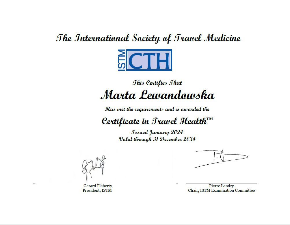 Razem z mężem mieliśmy wizytę u Pani Doktor w związku z przygotowaniami do podróży i oboje jesteśmy bardzo zadowoleni z opieki, jaką otrzymaliśmy. Pani Doktor jest niezwykle skrupulatna, empatyczna i profesjonalna. Każdy temat został nam dokładnie i zrozumiale wytłumaczony, a zalecenia były jasne i dopasowane indywidualnie do naszych potrzeb. Bardzo doceniliśmy spokojne podejście oraz to, że Pani Doktor poświęciła nam tyle czasu, ile faktycznie potrzebowaliśmy – bez pośpiechu, z pełnym zaangażowaniem. Czuliśmy się zaopiekowani i dobrze przygotowani do wyjazdu. Z pełnym przekonaniem polecamy Panią Doktor każdemu, kto planuje podróż i chce zadbać o swoje zdrowie.