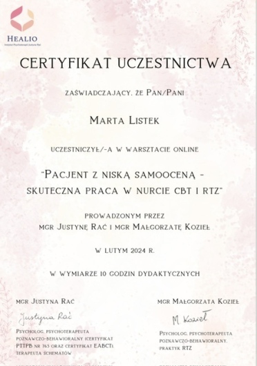 Serdecznie polecam. Spotkania z Panią Martą bardzo mi pomogły.