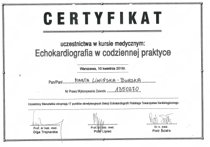 Jaki jest zakres porad oferowanych przez Marta Liwińska-Burska?Marta Liwińska-Burska to kardiolog. Na podstawie swojego doświadczenia i wykształcenia Marta Liwińska-Burska oferuje usługi takie jak: konsultacja kardiologiczna, konsultacja kardiologa - telemedycyna, konsultacja kardiologiczna (kolejna wizyta), Konsultacja telefoniczna - Kardiolog.
