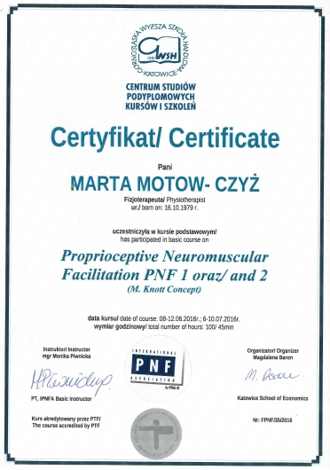 Do chwili obecnej uczestniczyłam w wielu sympozjach i konferencjach naukowych z zakresu fizjoterapii i rehabilitacji. Swoje praktyczne doświadczenie staram się popierać działalnością naukową.