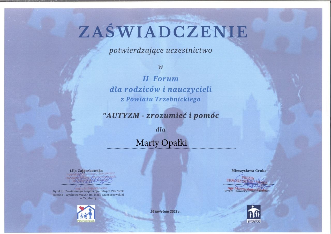 Pani Marta jest niezwykle ludzka osobą, udałam się po pomoc w sprawie problematycznych zachowań mojego dziecka. Pomogła mi zrozumieć skąd dane zachowania mogą się brać i jak na nie reagować. Już po 2 miesiącach widać różnicę w zachowaniu dziecka i moim. Mamy lepszy kontakt. Dziękuję