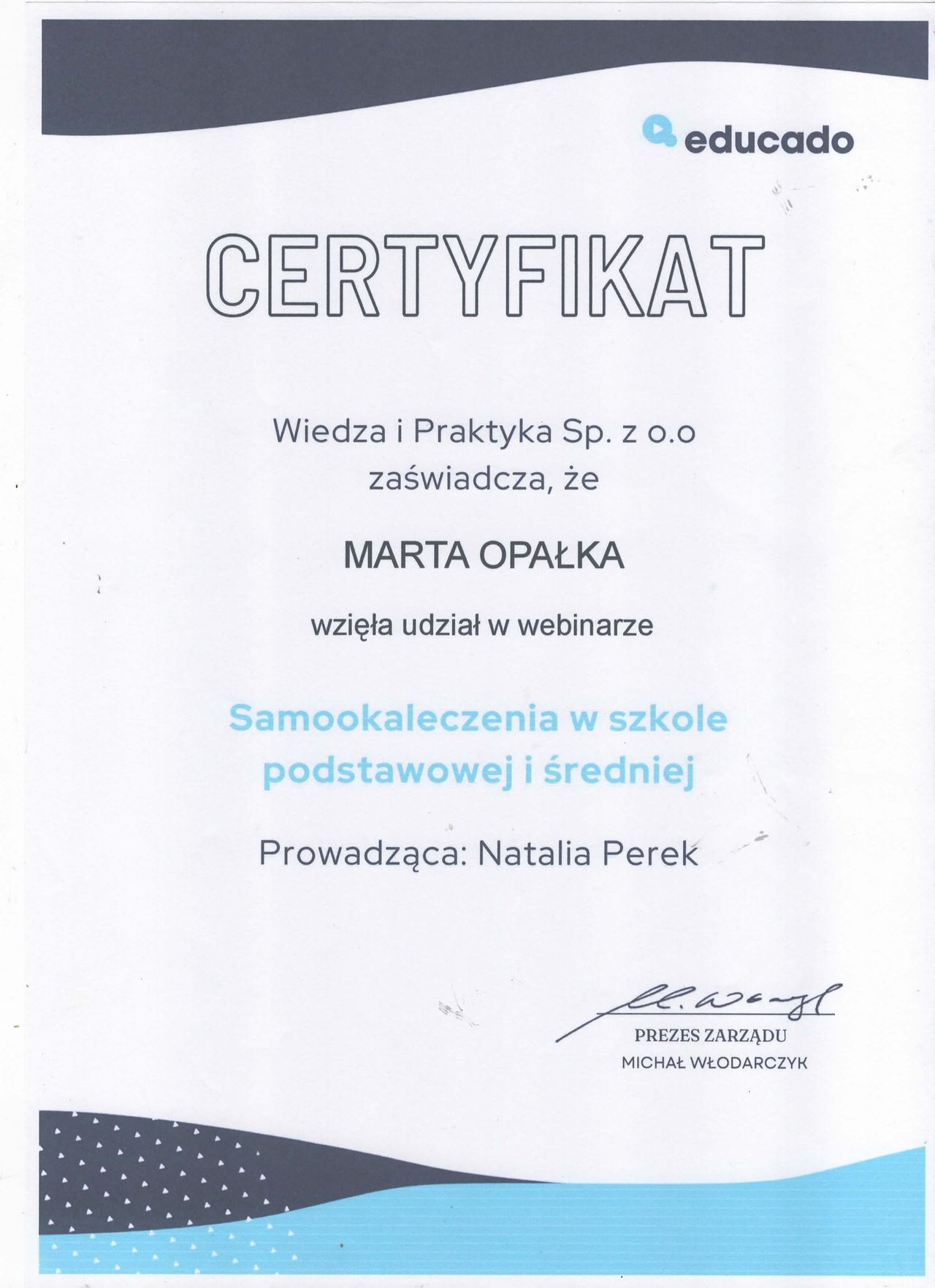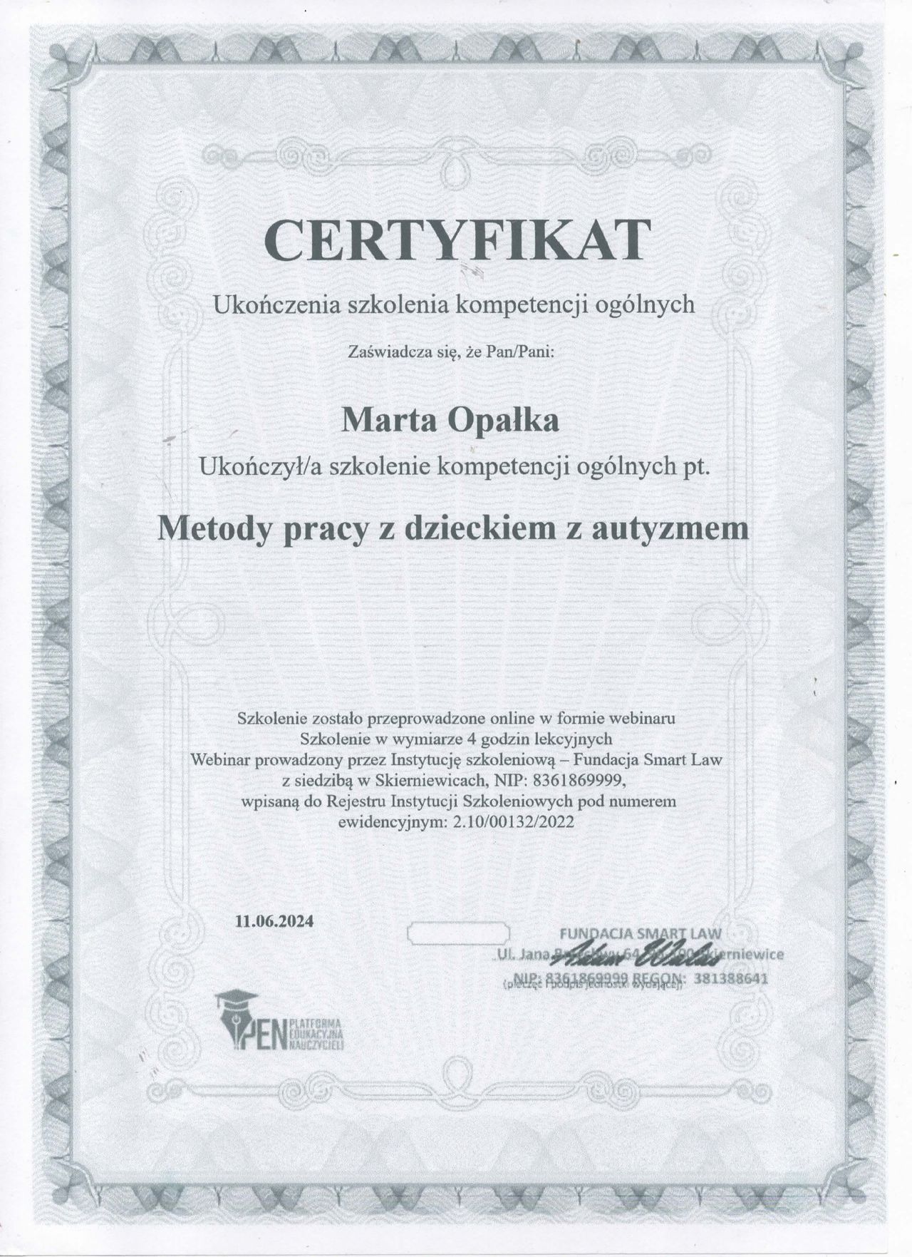 Czy Marta Opałka przyjmuje online, bez konieczności pojawiania się w placówce?Tak, Marta Opałka oferuje konsultacje online. Wybierz opcję „konsultacja online” przy umawianiu wizyty, a zobaczysz dostępne terminy.