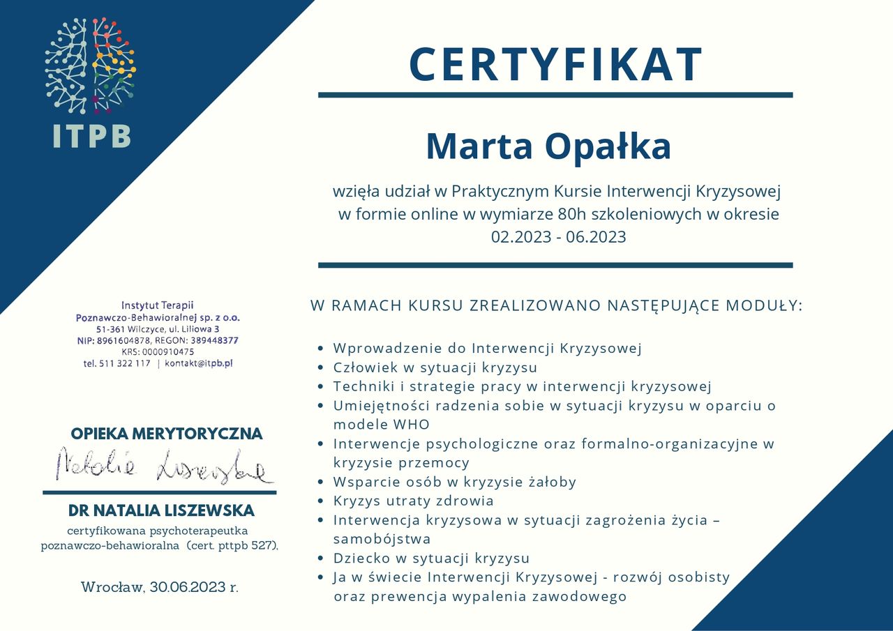 Gdzie Marta Opałka ma swój gabinet?Marta Opałka przyjmuje pod adresem: