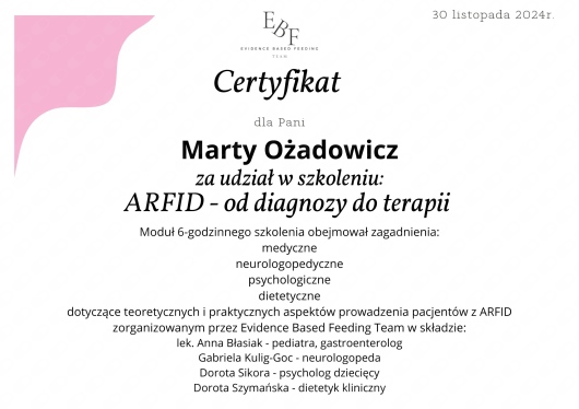- Aktualnie w trakcie uzykiwania tytułu narodowego i europejskiego specjalisty leczenia otyłości - kurs SCOPE (Specialist Certification of Obesity Professional Education)