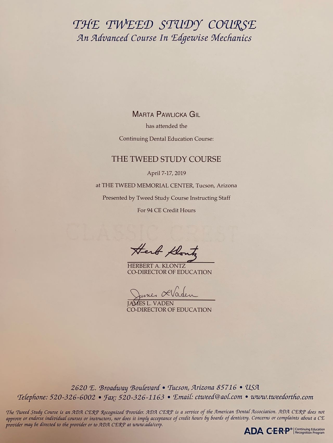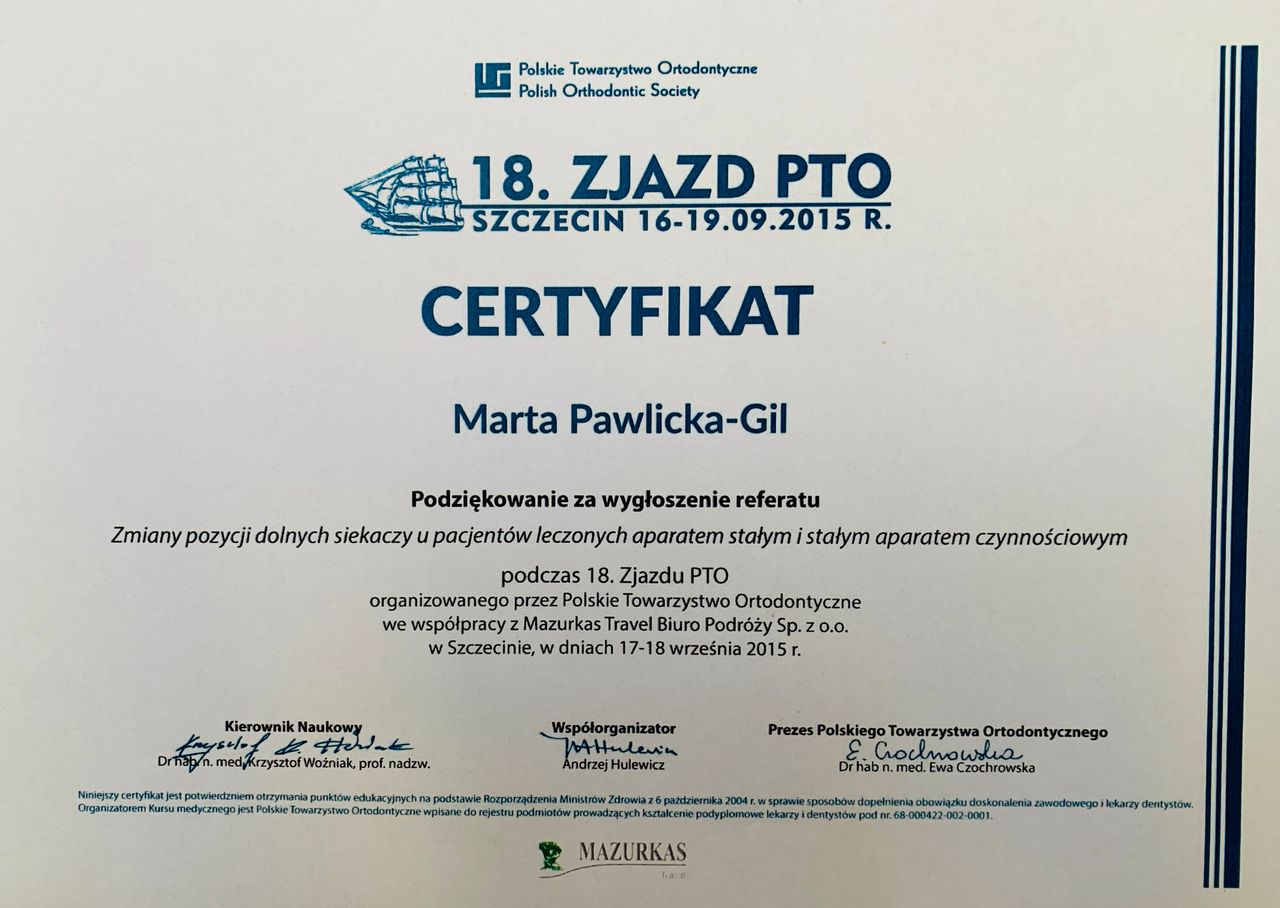 Uczestniczka wielu kursów, konferencji i szkoleń z zakresu Ortodoncji, m.in.: