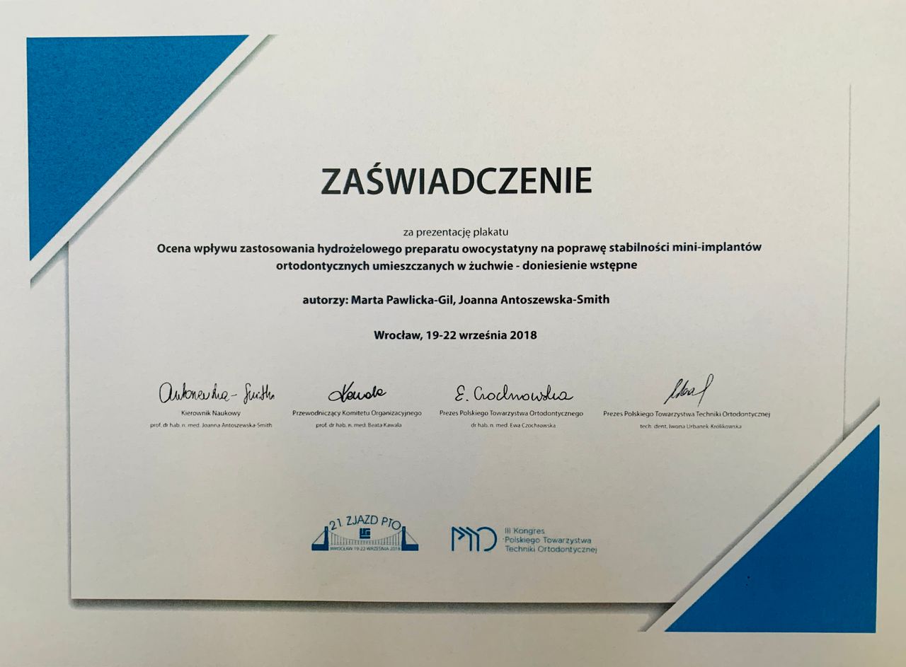 W marcu 2020 roku, po 3-letnim szkoleniu specjalizacyjnym, zdała Państwowy Egzamin Specjalizacyjny, uzyskując tytuł specjalisty w dziedzinie ortodoncji.