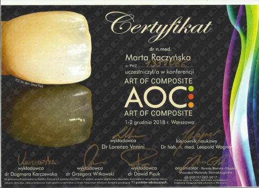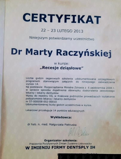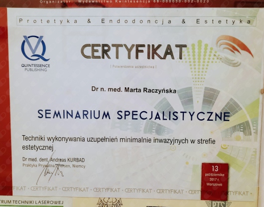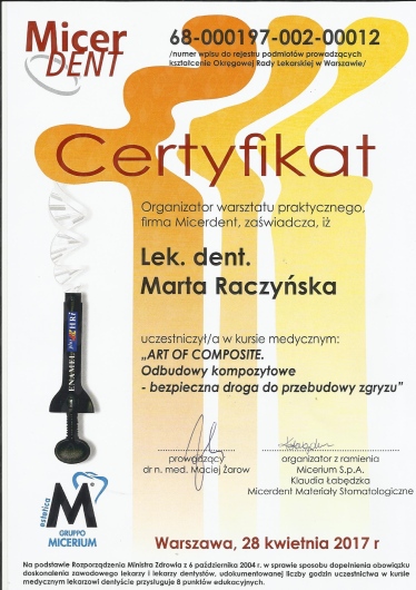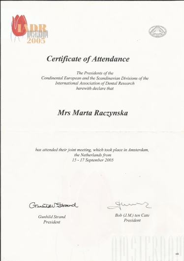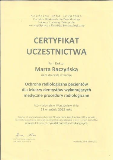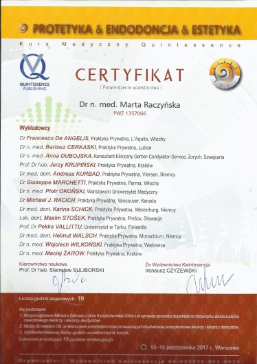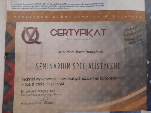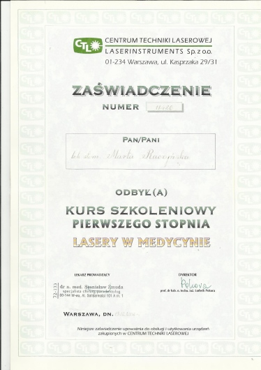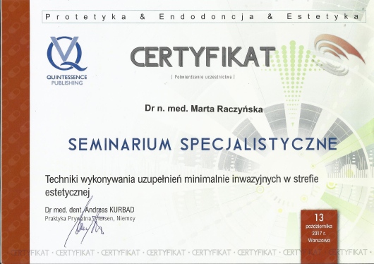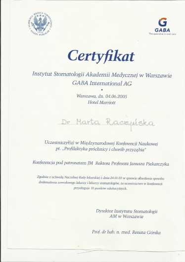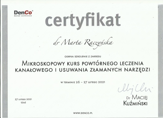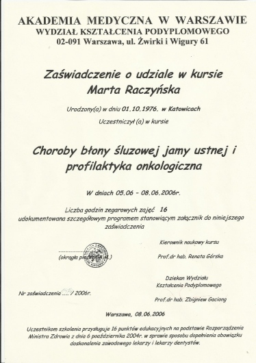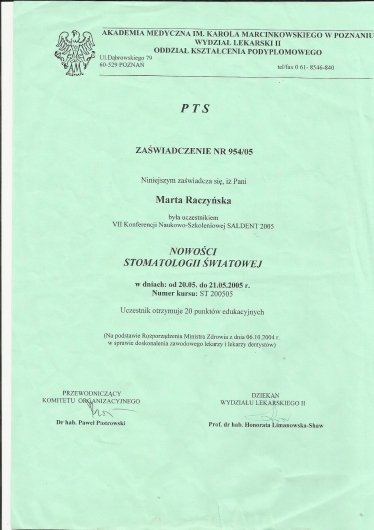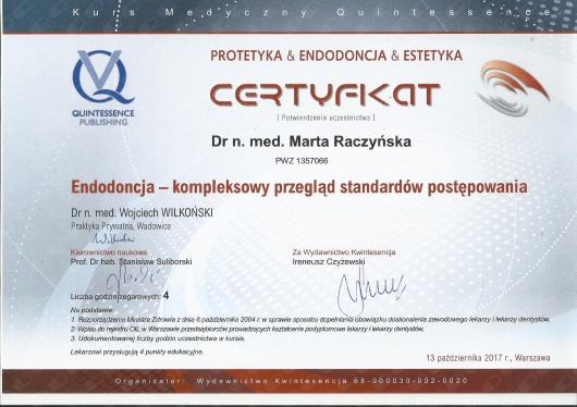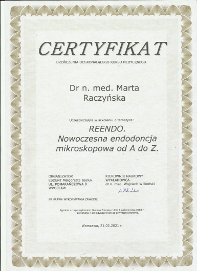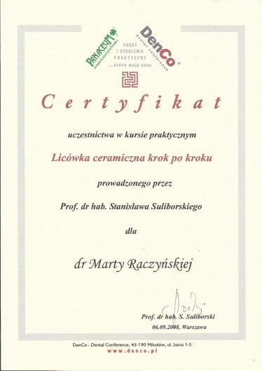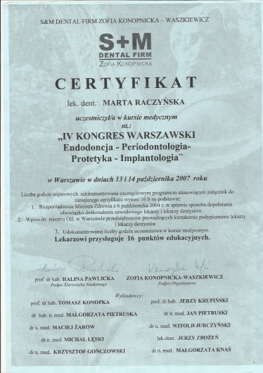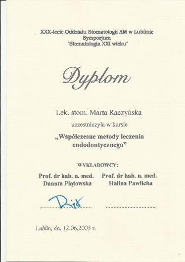 Specjalista w dziedzinie Stomatologii Zachowawczej i Endodoncji (zdany egzamin specjalizacyjny 2008r)