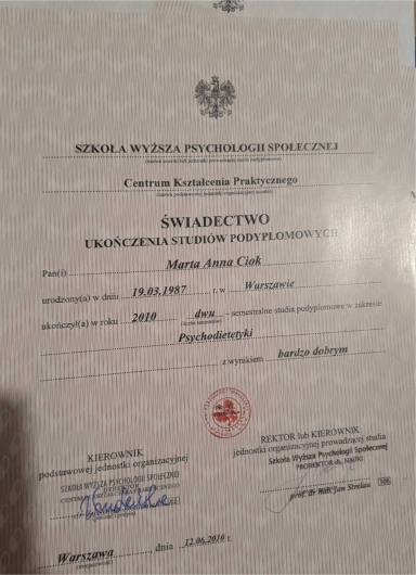 Nie mogłam trafić lepiej, niż na Panią Martę! Chyba nigdy nie trafiłam na osobę, która ma tak ogromną wiedzę w dziedzinie nie tylko dietetyki, ale też chorób, które wymagają specyficznej diety. Będąc dość wyznaniowym przypadkiem (endometrioza, hashimoto plus kłopotliwe nerki) otrzymałam dietę, która nie tylko „nie szkodzi”, ale pomaga! W ciągu 6 miesięcy moje zmiany endometrialne się zmniejszyły o 20%, a choroba jest ze mną już 10 lat! Z całego serca polecam i dziękuję!!!