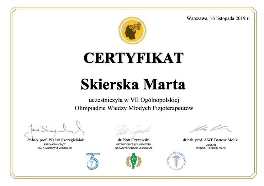 Do Pani Marty trafiłem po urazie stawu skokowego, szereg ćwiczeń zaleconych przez Panią Magister pozwoliły mi szybko wrócić na boisko. Jestem bardzo zadowolony i szczerze polecam!