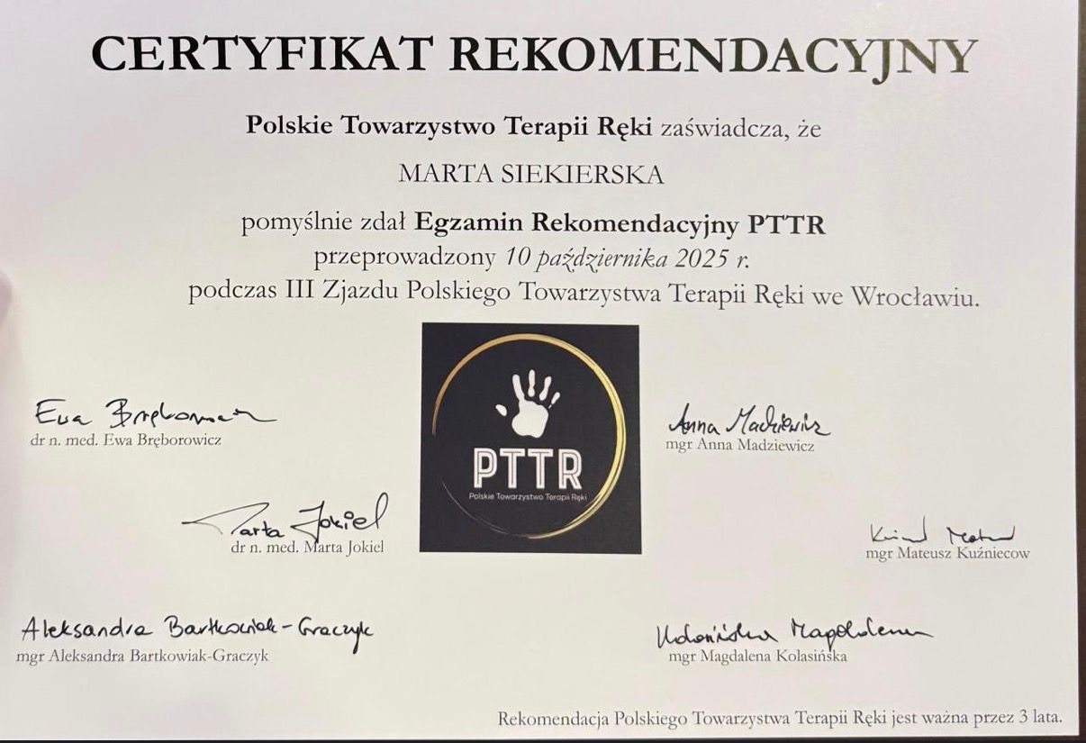 • Uzyskanie Rekomendacji Polskiego Towarzystwa Terapii Ręki PTTR (10.2025)