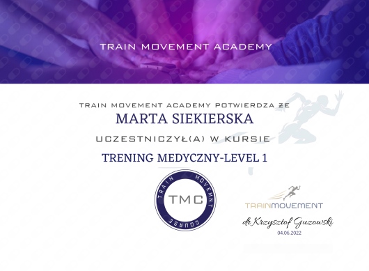 Pani Mgr. Marta to wybitna fizjoterapeutka, która nie tylko pomogła mi wyzdrowieć po dwóch poważnych kontuzjach - uszkodzeniu rotatorów i łokciu tenisisty - ale również umożliwiła kontynuację pasji do sportu. Jej profesjonalizm, indywidualne podejście do pacjenta i dogłębne zrozumienie potrzeb osób aktywnych fizycznie zrobiły na mnie ogromne wrażenie. Pani Marta nie tylko zastosowała skuteczne metody leczenia, ale również doradziła, jak unikać przyszłych urazów. Dzięki niej nie tylko wróciłem do formy, ale i zyskałem narzędzia do dbania o swoje zdrowie w przyszłości. Gorąco polecam Panią Mgr. Martę wszystkim sportowcom, szukającym nie tylko wyjątkowej opieki rehabilitacyjnej, ale i wsparcia w dążeniu do lepszej kondycji i unikaniu kontuzji. Jej kompetencje i zaangażowanie są bezcenne dla każdego, kto ceni sobie zdrowie i aktywność fizyczną.