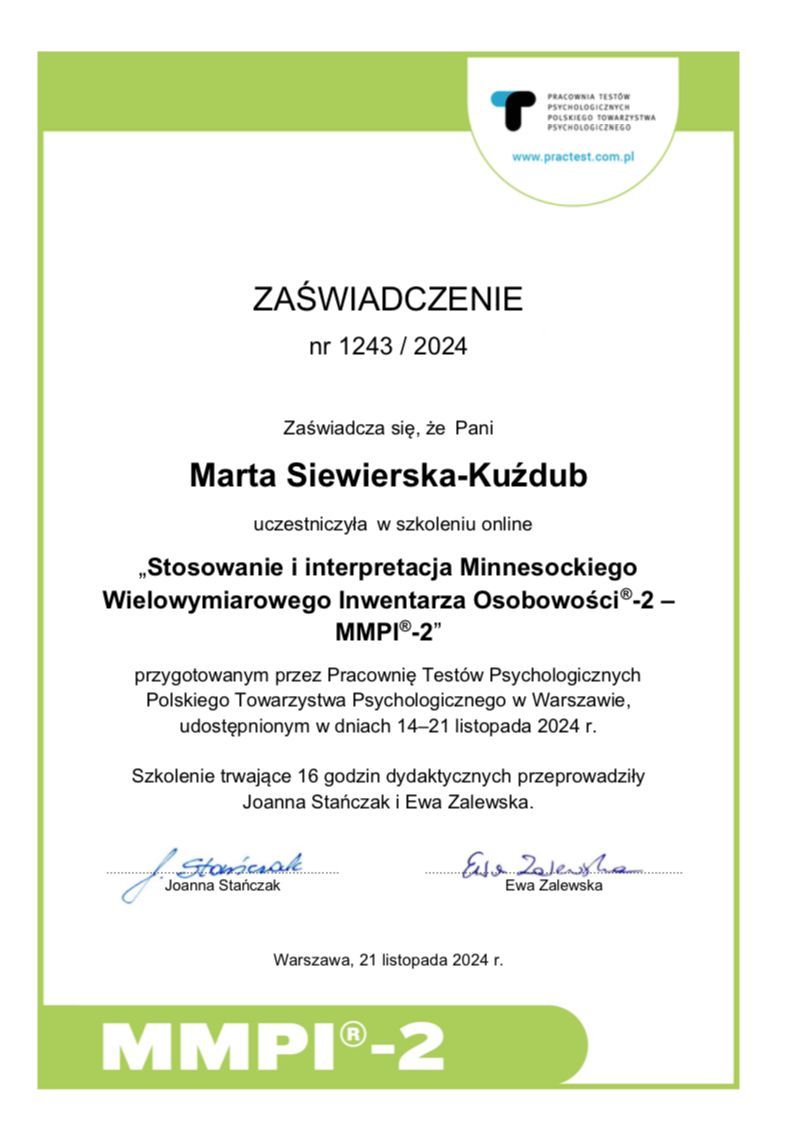 Jaki jest zakres porad oferowanych przez Marta Siewierska-Kuźdub?Marta Siewierska-Kuźdub to psycholog. Na podstawie swojego doświadczenia i wykształcenia Marta Siewierska-Kuźdub oferuje usługi takie jak: Konsultacja psychologiczna, Konsultacja psychologiczna online, konsultacja psychologiczna dzieci.