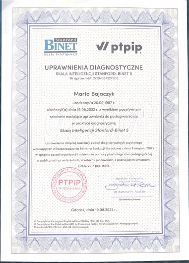 Psychoterapia to proces, który pozwala na głębsze zrozumienie siebie, swoich emocji i trudności. Czasami najtrudniej jest zacząć, zwłaszcza dla dzieci i nastolatków, którzy dopiero uczą się radzić sobie z emocjami i relacjami. Gabinet psychoterapeutyczny jest miejscem, gdzie dziecko, nastolatek, a także ich rodzice mogą poczuć się bezpiecznie i swobodnie, by wspólnie z psychoterapeutą przejść przez wyzwania rozwoju emocjonalnego i psychicznego. "To, co jest niezwykle ważne w pracy z dziećmi, to przestrzeń, w której mogą się bawić. Zabawa w psychoterapii dziecięcej to nie tylko forma, to język, którym dzieci wyrażają siebie." – Donald Winnicott Marta Skawińska jest psychologiem i psychoterapeutą w trakcie czteroletniego szkolenia psychoterapeutycznego w nurcie psychodynamicznym w warszawskiej Szkole Psychoterapii Dzieci i Młodzieży. Jest słuchaczką studiów podyplomowych Seksuologia Kliniczna- Opiniowanie, Edukacja, Terapia. organizowanych przez Uniwersytet im. Adama Mickiewicza w Poznaniu. W pracy z dziećmi i młodzieżą, stawia na budowanie bezpiecznej i pełnej zaufania relacji. Dzieci, które przychodzą do jej gabinetu, mają możliwość nie tylko nawiązać więź z terapeutą, ale także przejść przez proces samopoznania, w którym zabawa staje się kluczowym elementem terapii. Praca oparta na nurcie psychodynamicznym jest dla dzieci i młodzieży sposobem na odkrywanie swoich emocji, lęków, radości i smutków w sposób, który jest im bliski i naturalny. Dzięki zabawie, rysowaniu, odgrywaniu scenek, a także rozmowie, terapeuta umożliwia młodym osobom zrozumienie trudnych emocji i doświadczeń. Każde dziecko jest traktowane indywidualnie, z pełnym szacunkiem do jego tempa, potrzeb i granic. Gabinet jest przestrzenią, w której dziecko i nastolatek mogą poczuć się akceptowani i zrozumiani. Dla rodziców istotne jest nie tylko wsparcie dziecka, ale również zrozumienie jego emocji i potrzeb. Spotkania z rodzicami są integralną częścią procesu terapeutycznego, umożliwiając rodzicom lepsze zrozumienie świata emocjonalnego dziecka i wspieranie go w codziennym życiu. Pani Marta jest osobą, która z pełnym zaangażowaniem podchodzi do każdego przypadku, ciągle podnosząc swoje kwalifikacje i kompetencje, aby oferować jak najbardziej skuteczną pomoc. Jest w trakcie czteroletniego szkolenia w psychoterapii psychodynamicznej, a swoją pracę poddaje superwizji, by zapewnić najwyższą jakość wsparcia.