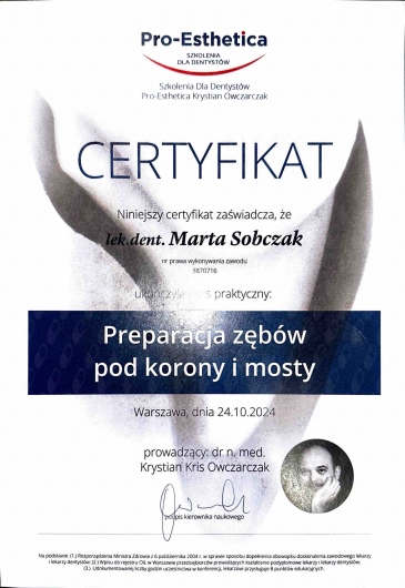 Jaki jest zakres porad oferowanych przez Marta Sobczak?Marta Sobczak to stomatolog. Na podstawie swojego doświadczenia i wykształcenia Marta Sobczak oferuje usługi takie jak: doraźna pomoc stomatologiczna, pacjent z bólem, leczenie zachowawcze.