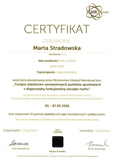 Jesteś już po wizycie u mgr Marta Stradowska? Daj znać, co myślisz. Inni pacjenci będą wdzięczni za pomoc w wyborze najlepszego specjalisty.