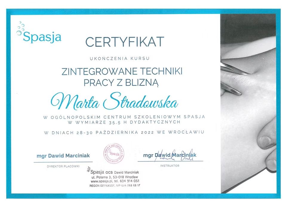 Jaki jest zakres porad oferowanych przez Marta Stradowska?Marta Stradowska to fizjoterapeuta. Na podstawie swojego doświadczenia i wykształcenia Marta Stradowska oferuje usługi takie jak: konsultacja fizjoterapeutyczna, Mobilizacja blizny, fizjoterapia we wczesnym połogu, masaż Kobido, Japoński masaż twarzy.