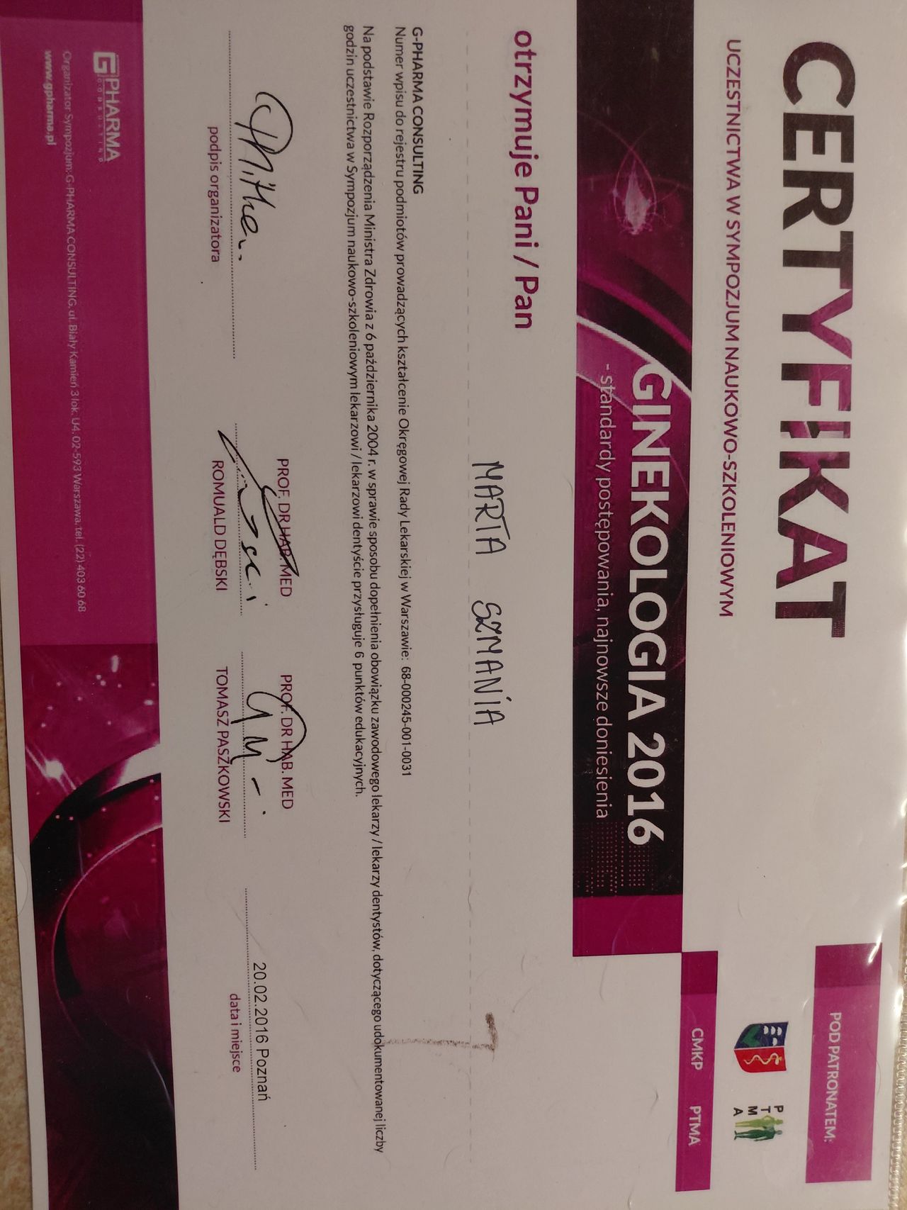 Jestem doświadczonym ginekologiem - położnikiem, dla którego najważniejsza jest wielokierunkowa opieka nad zdrowiem kobiety, niezależnie od jej okresu życia. Ukończyłam Uniwersytet Medyczny w Poznaniu a tytuł specjalisty uzyskałam w 2020 r.