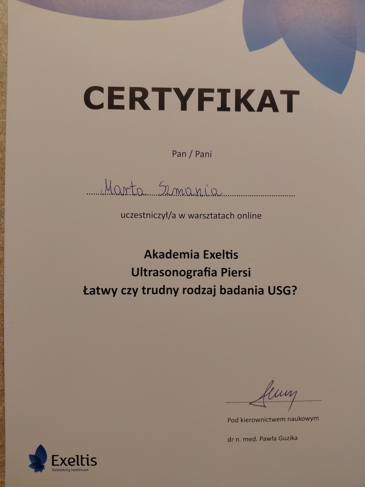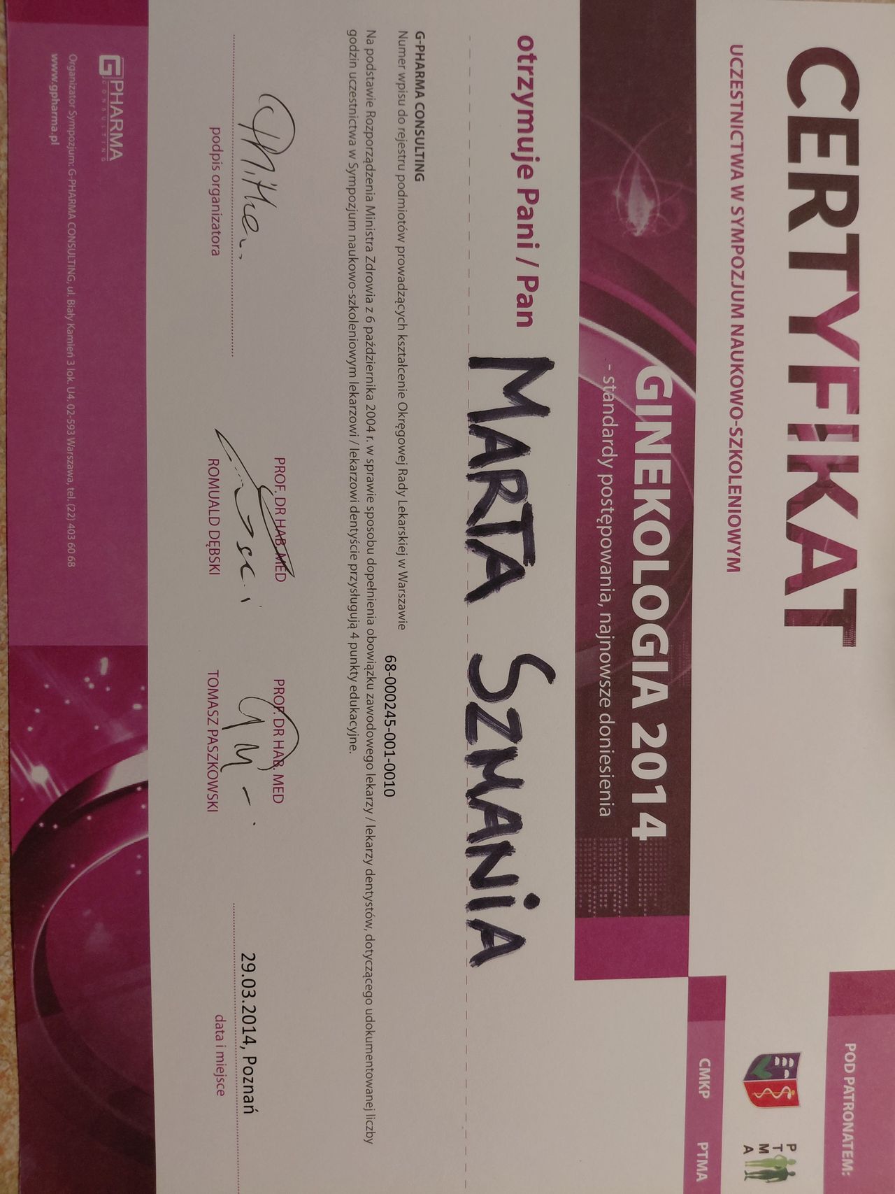 Jaki jest zakres porad oferowanych przez Marta Szmania?Marta Szmania to ginekolog. Na podstawie swojego doświadczenia i wykształcenia Marta Szmania oferuje usługi takie jak: konsultacja ginekologiczna, Biopsja aspiracyjna endometrium, USG piersi, Badanie HPV 14 typów (genotypowanie HPV 16 i 18 oraz pozostałe 12 typów w jednym pakiecie), Cytologia płynna LBC + HPV-HR 14 wysokoonkogennych typów wirusa, konsultacja ginekologiczna + USG + cytologia LBC, konsultacja ginekologiczna + USG + USG piersi, Profilaktyka coroczna ( badanie ginekologiczne + USG ginekologiczne + USG piersi + cytologia płynna LBC, PakietMAX - konsultacja ginekologiczna + USG ginekologiczne + USG piersi + CoTEST (cytologia LBC + HPV), prowadzenie ciąży.