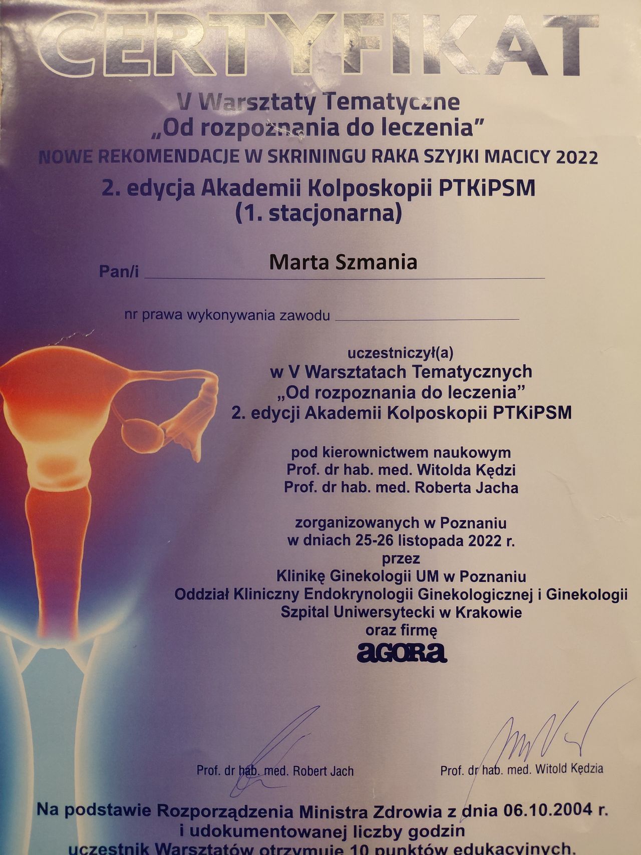 W zakresie leczenia pozaszpitalnego wykonuję zabiegi małoinwazyjne: aspirację jamy macicy, usuwanie polipów szyjkowych, pobieranie celowanych wycinków w kolposkopii, usuwanie znamion i innych zmian skórnych w obrębie zewnętrznych narządów płciowych.