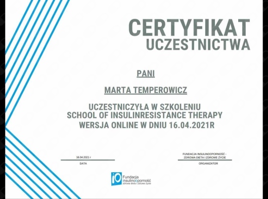 Jest to specjalistka z ogromną wiedzą i indywidualnym podejściem do pacjenta. Pani Marta wykazuje się profesjonalizmem, empatią oraz umiejętnością motywowania do wprowadzania trwałych, zdrowych nawyków. Współpraca przebiega w miłej i komfortowej atmosferze, a osiągane efekty są realne i satysfakcjonujące.• Online • konsultacja online •