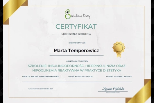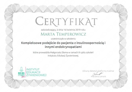 Jaki jest zakres porad oferowanych przez Marta Temperowicz?Marta Temperowicz to dietetyk. Na podstawie swojego doświadczenia i wykształcenia Marta Temperowicz oferuje usługi takie jak: Konsultacja dietetyczna, konsultacja dietetyczna dla par, Pakiet 3-miesięcznej współpracy, Pakiet 1-miesięcznej współpracy, Konsultacja kontrolna, Pakiet 12-miesięcznej współpracy, Pakiet 1-miesięcznej współpracy dla pary, Pakiet 3-miesięcznej współpracy dla pary, Pakiet 12-miesięcznej współpracy dla pary, konsultacja online.