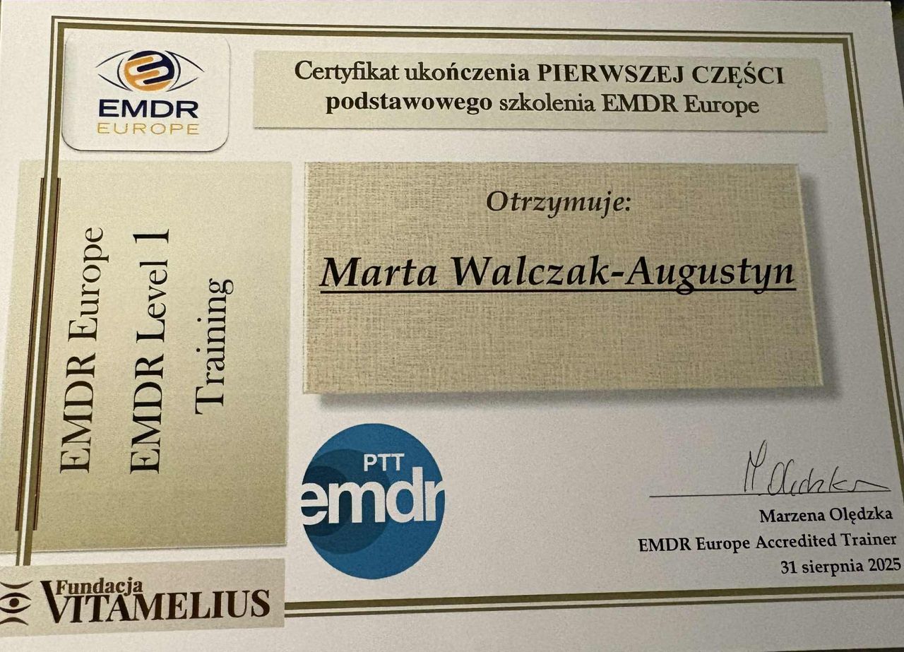 Trafiłam do Pani Marty przypadkowo, byłam na diagnozie ADHD u jestem bardzo zadowolona z całego przebiegu. Dawno nie czułam, że mogę się przy kimś tak otworzyć. Nie bałam się być sobą przy Pani Marcie. To pierwszy specjalista, który pokazał mi, że można żyć inaczej i zawsze gdzieś w sercu będę miło wspominać nasze spotkania i okazane wsparcie. Dziękuję Pani za danie mi przestrzeni i pomoc w najgorszym momencie życia. Każdemu polecam trafienie na takiego specjalistę