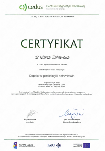 • Indywidualna Praktyka Lekarska Marta Zalewska-Zacharek • konsultacja ginekologiczna + USG + cytologia •