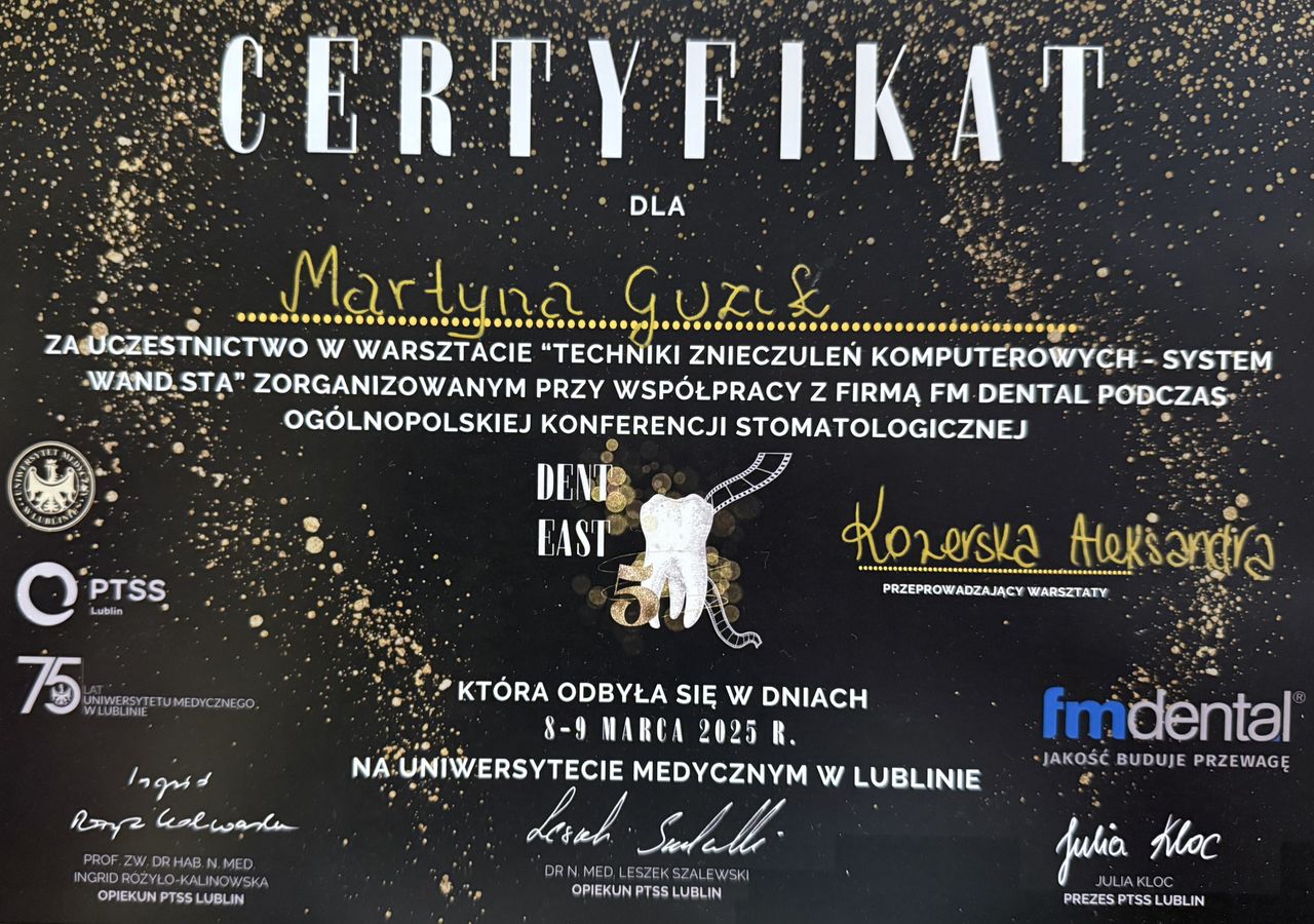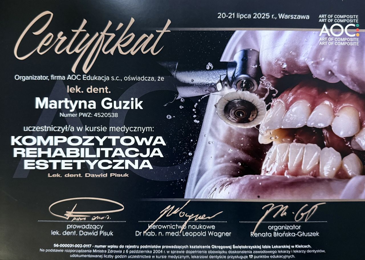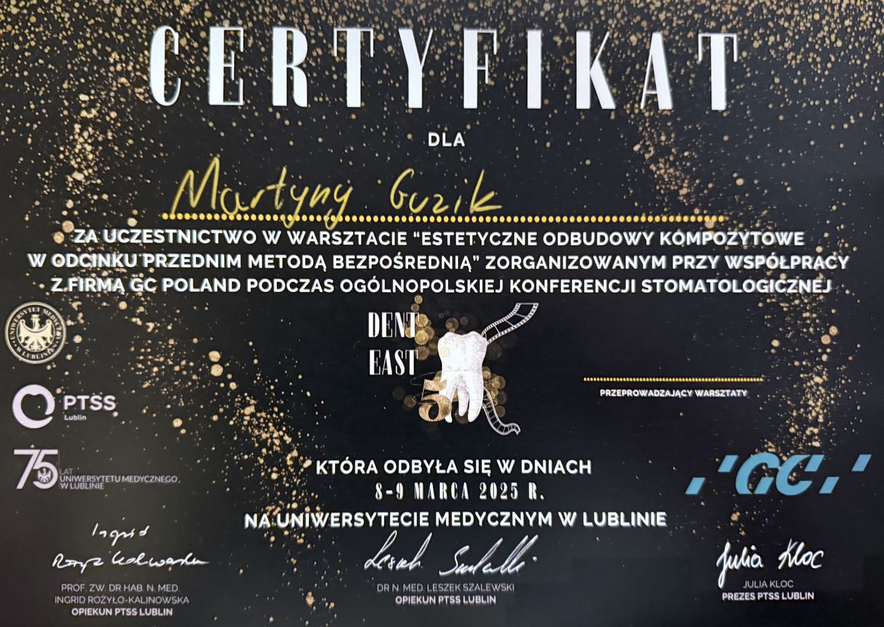 Jestem Absolwentką Uniwersytetu Medycznego w Łodzi, kierunku lekarsko-dentystycznego. Ukończyłam staż w renomowanej klinice nowoczesnej stomatologii w Krakowie, z kompleksowym podejściem do potrzeb pacjenta.