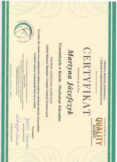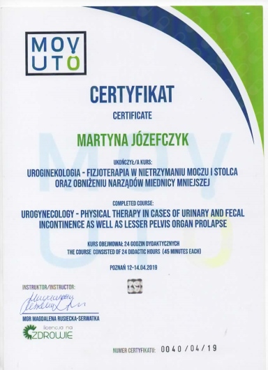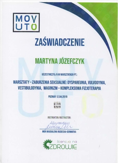 Jaki jest zakres porad oferowanych przez Martyna Józefczyk?Martyna Józefczyk to fizjoterapeuta. Na podstawie swojego doświadczenia i wykształcenia Martyna Józefczyk oferuje usługi takie jak: fizjoterapia uroginekologiczna, wizyta fizjoterapeutyczna (pierwsza wizyta).