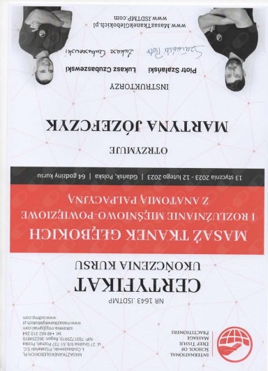 Złapał mnie ostry ból pleców, po jednej wizycie u Pani Martyny ból zniknął jak ręką odjąć. Bardzo Polecam Panią Martynę jest bardzo sympatyczna i fachowa !