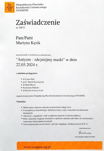 Mam również doświadczenie pracy z osobami dorosłymi w spektrum autyzmu.
