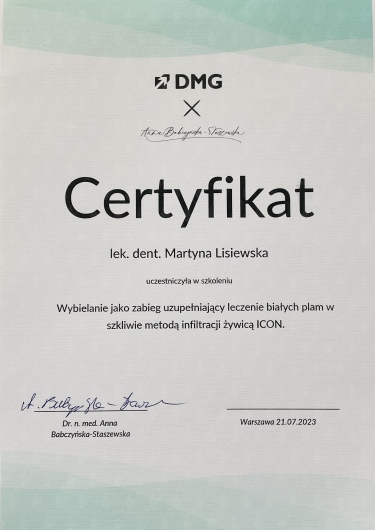 Rzadko piszę jakiekolwiek opinie w Internecie na temat wykonywanych usług, ale Pani Martyna Lisiewska to najlepszy stomatolog na świecie! Jestem bardzo trudnym przypadkiem, z wieloma problemami stomatologicznymi, a Pani Martyna Lisiewska jako jedyna doprowadziła moje zęby do prawidłowego stanu oraz skierowała mnie do innych specjalistów. Dzięki Pani Martynie uwierzyłam, że leczenie moich zębów ma sens.